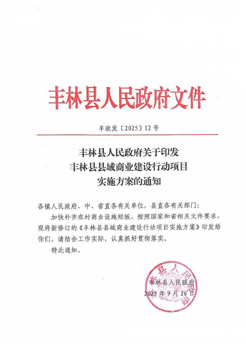 丰林县人民政府关于印发丰林县县域商业建设行动项目实施方案的通知