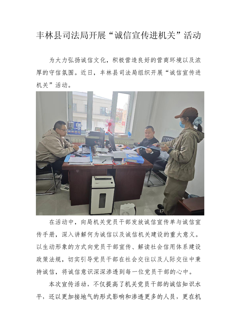 丰林县司法局开展“诚信宣传进机关”活动