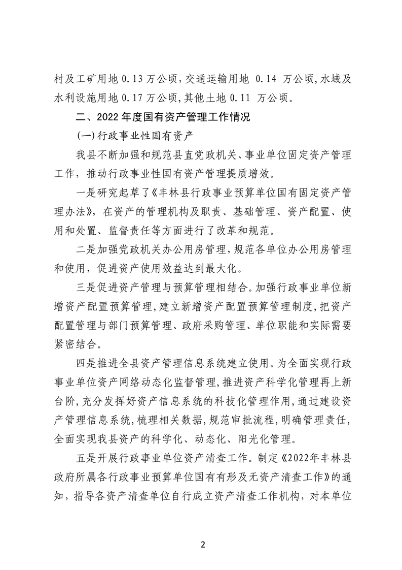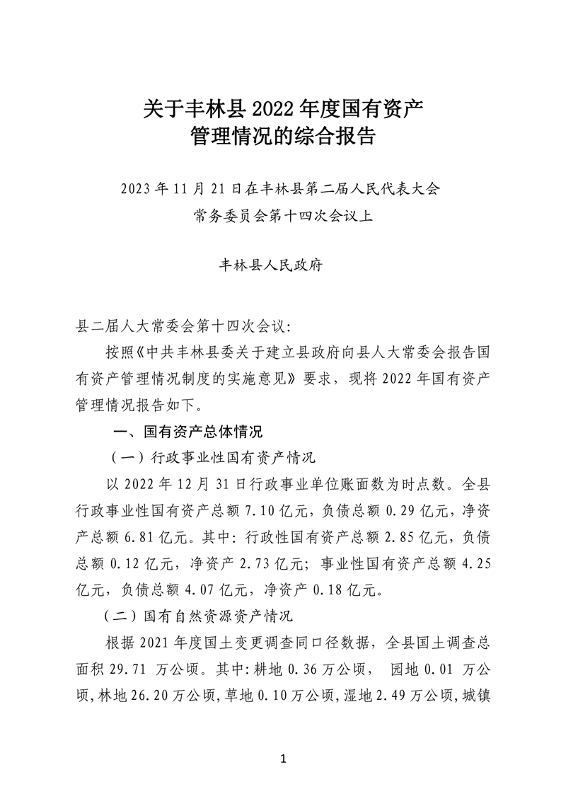 关于丰林县2022年度国有资产管理情况的综合报告