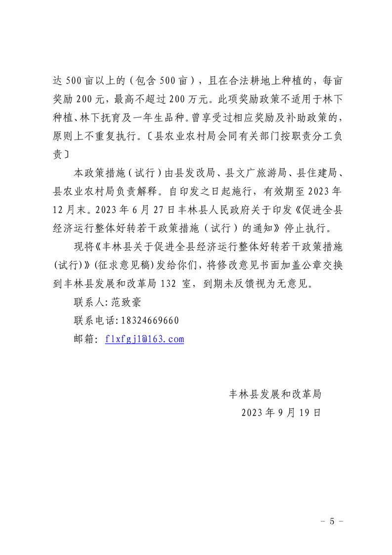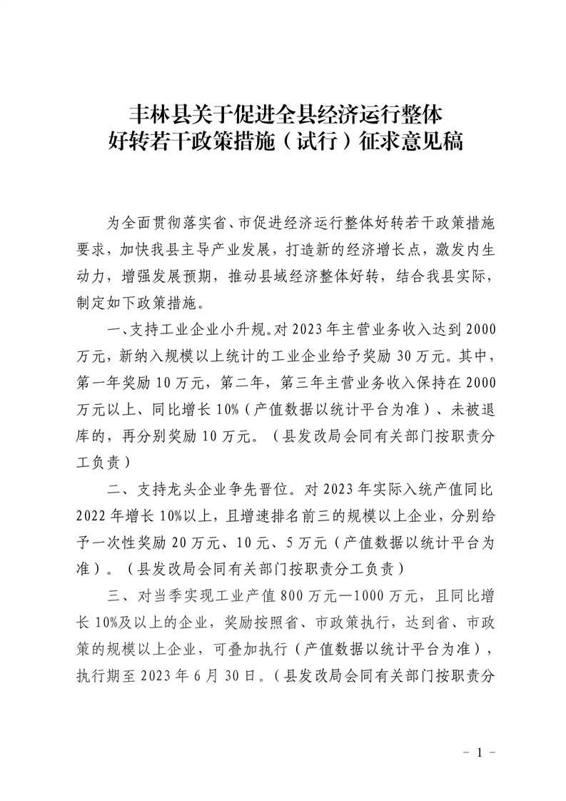 丰林县关于促进全县经济运行整体好转若干政策措施(试行)征求意见稿