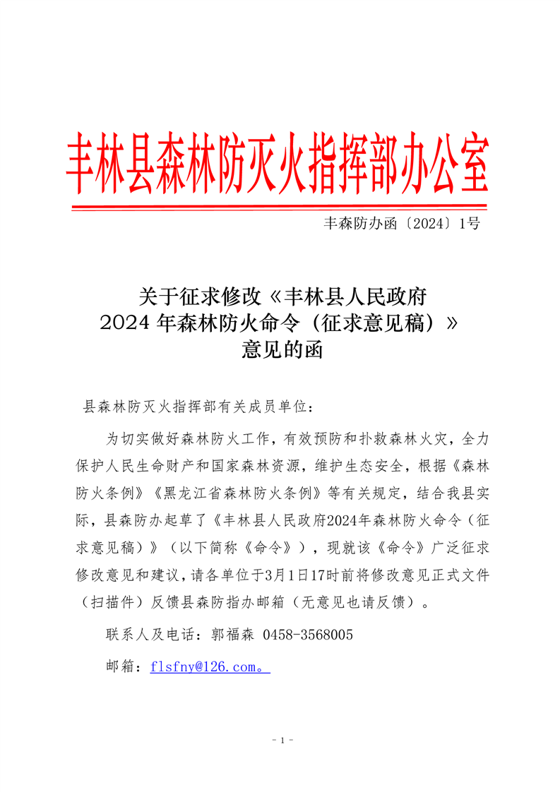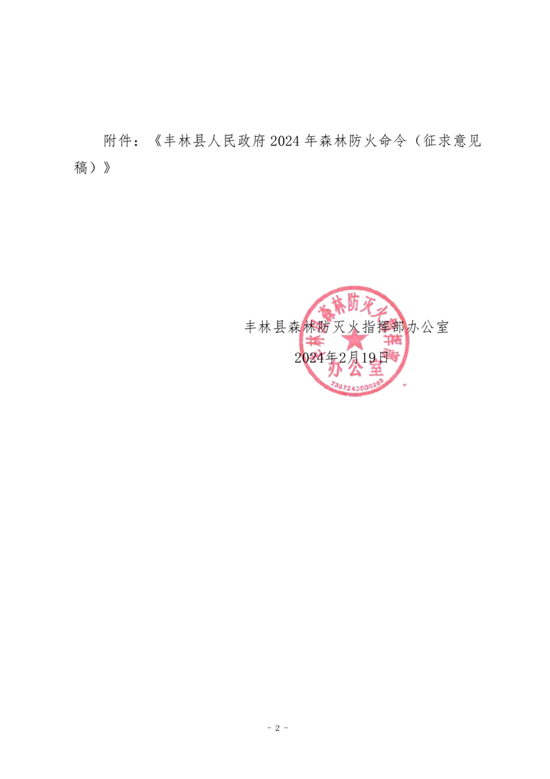 关于征求修改《丰林县人民政府2024 年森林防火命令(征求意见稿)》意见的函