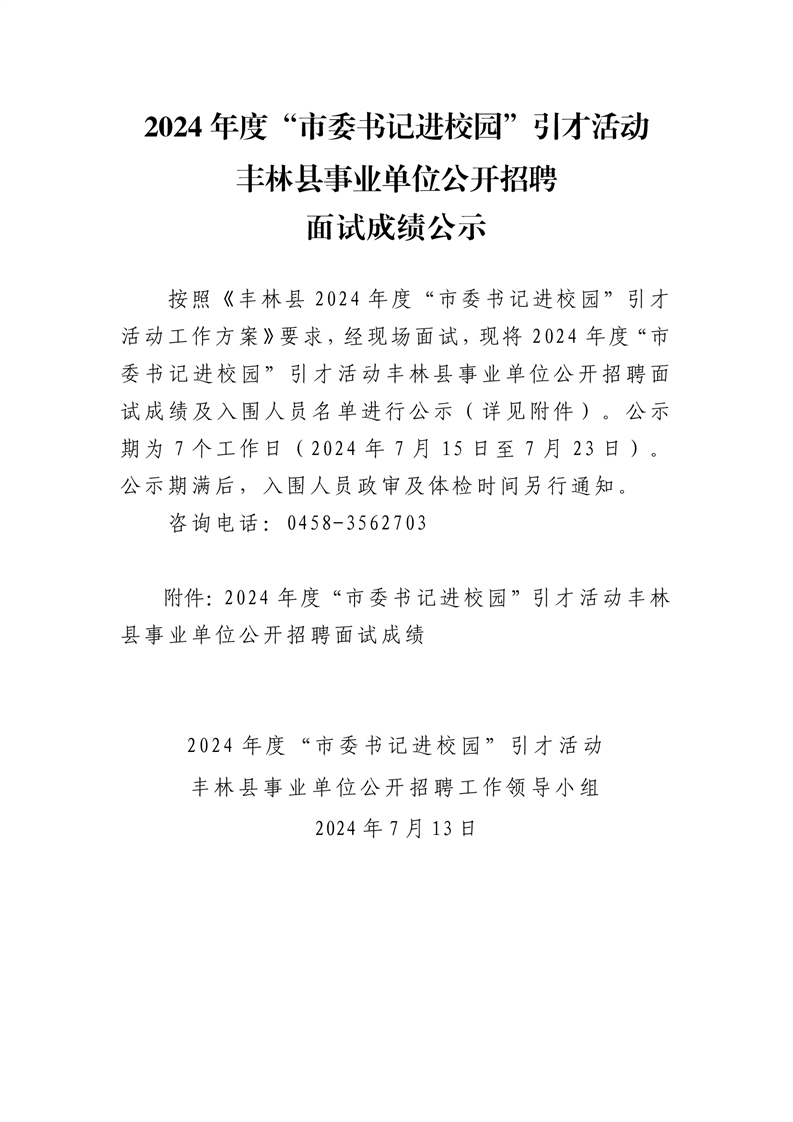 附件:2024年度“市委书记进校园”引才活动丰林县事业单位公开招聘面试成绩
