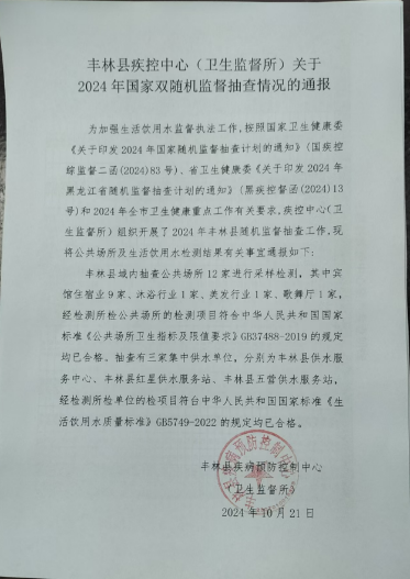 丰林县疾控中心(卫生监督所)关于2024年国家双随机监督抽查情况的通报