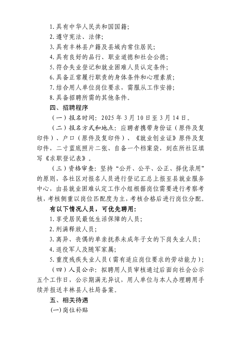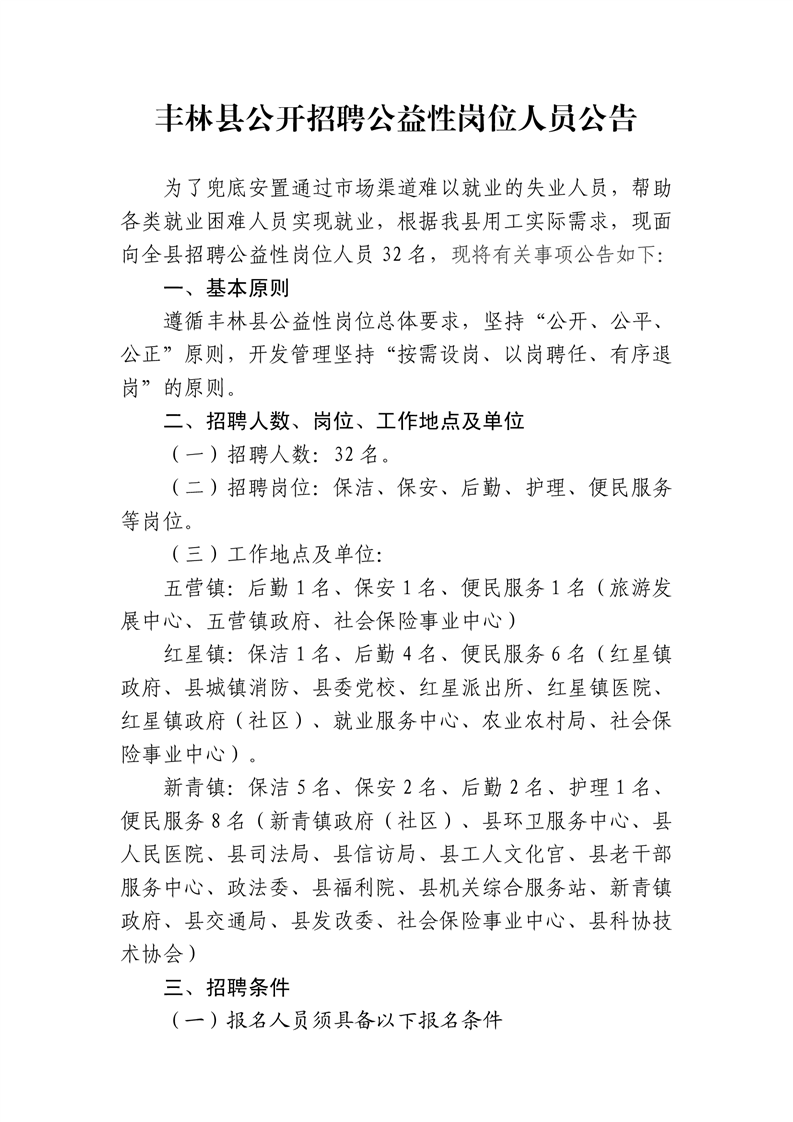 丰林县公开招聘公益性岗位人员公告
