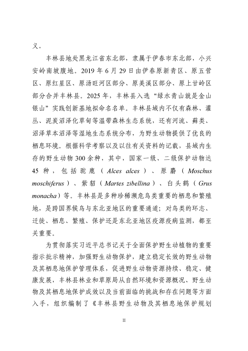 丰林县陆生野生动物及其栖息地保护规划(2026-2030年)(征求意见稿)