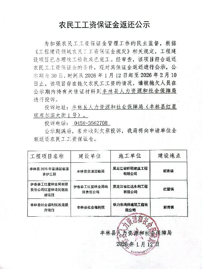 农民工工资保证金返还公示