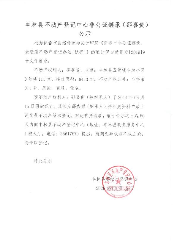 丰林县不动产登记中心非公证继承(邵喜贵)公示