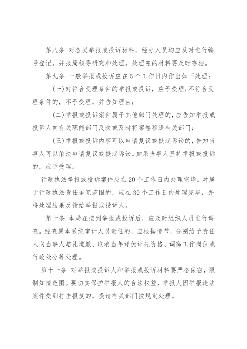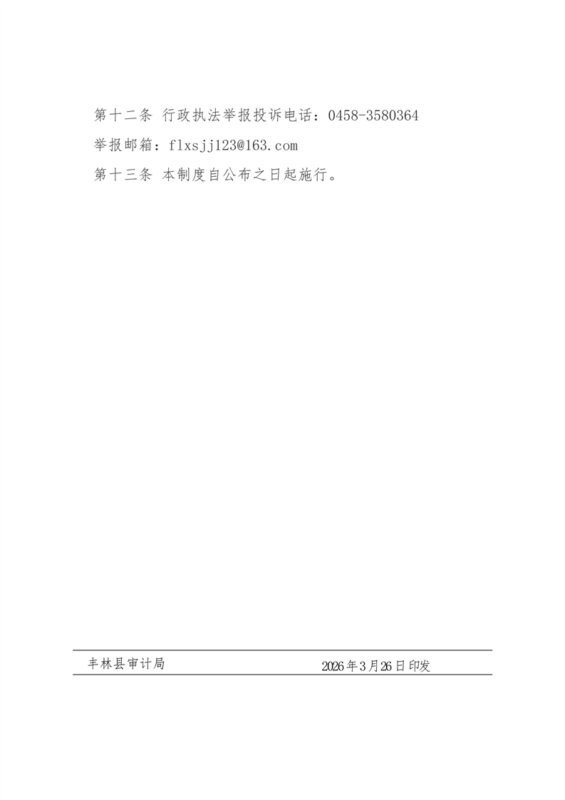 丰林县审计局行政执法投诉举报制度