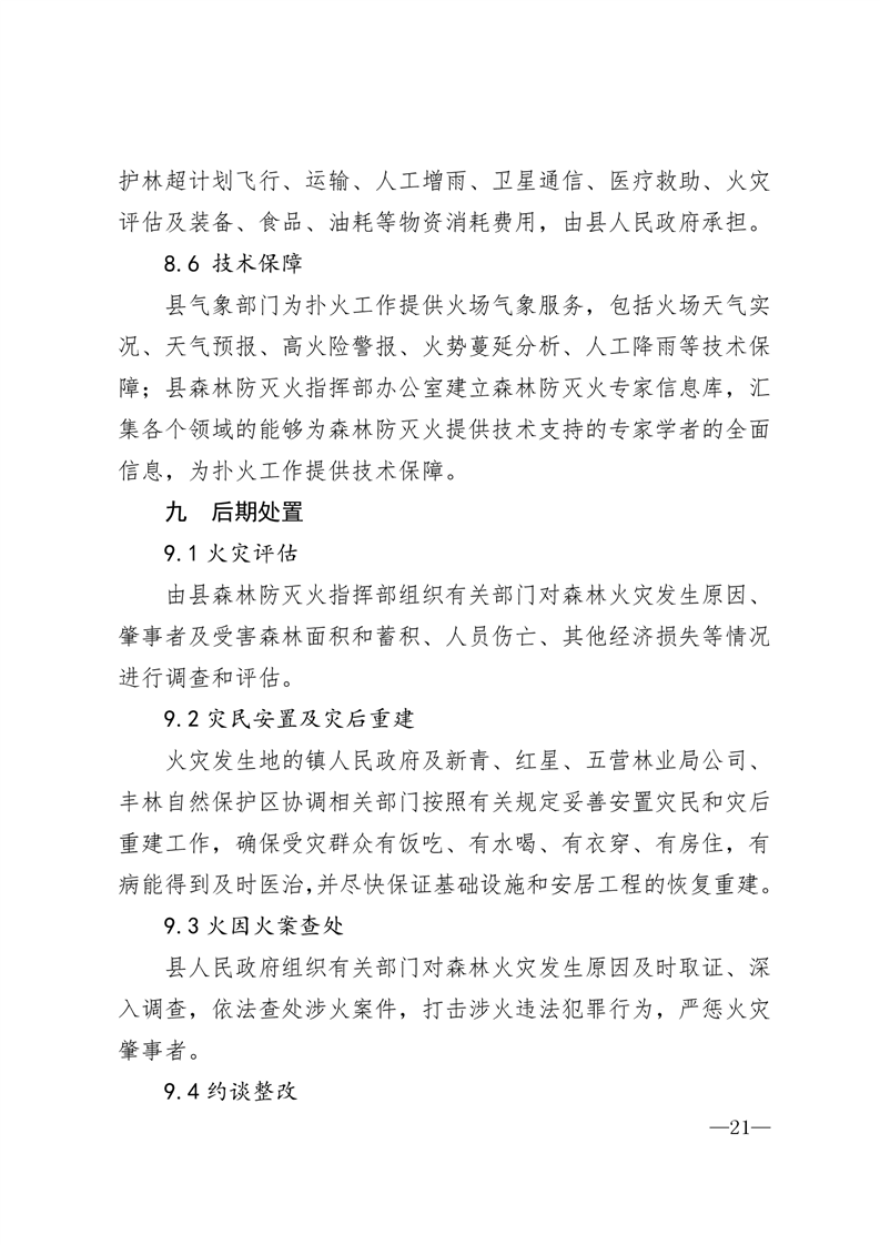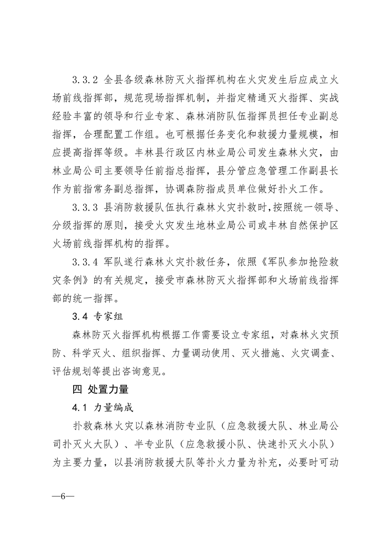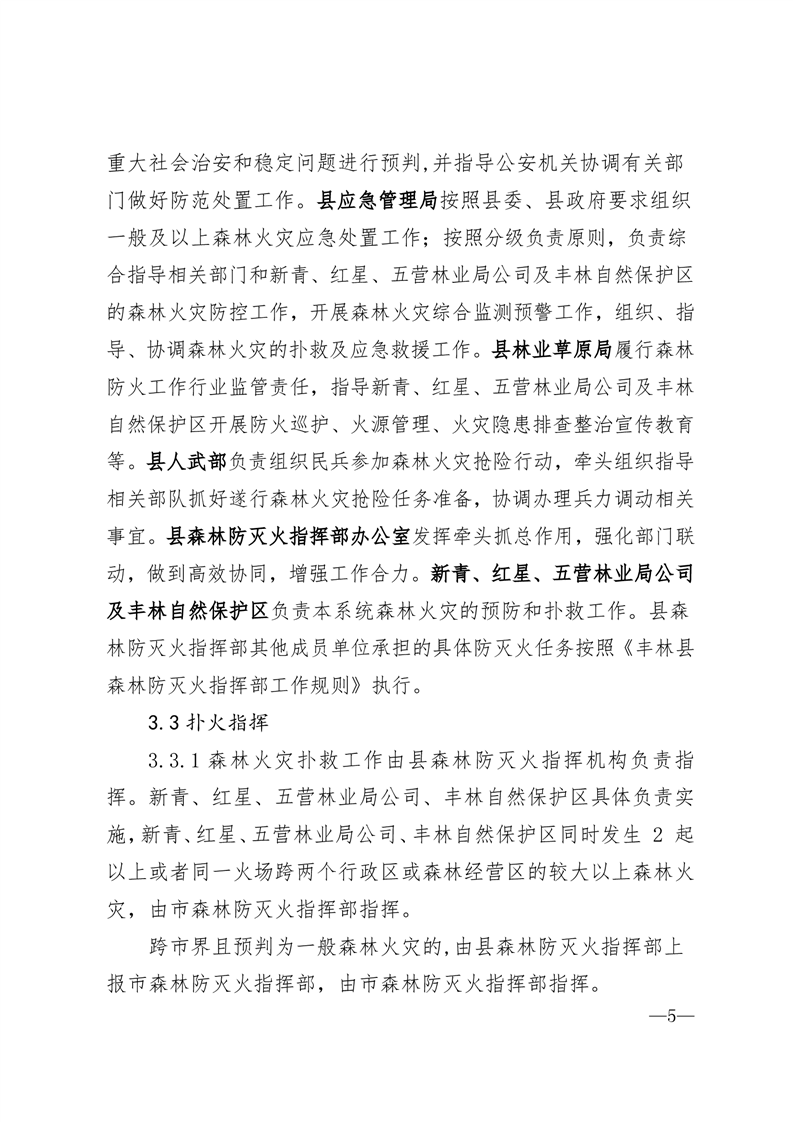 丰林县人民政府办公室关于印发丰林县森林火灾应急预案的通知