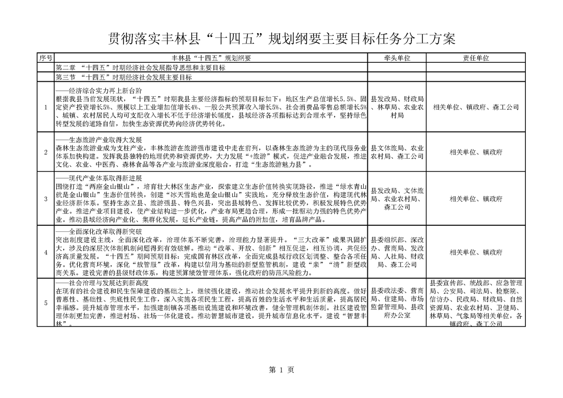 “十四五”规划纲要主要目标任务分工