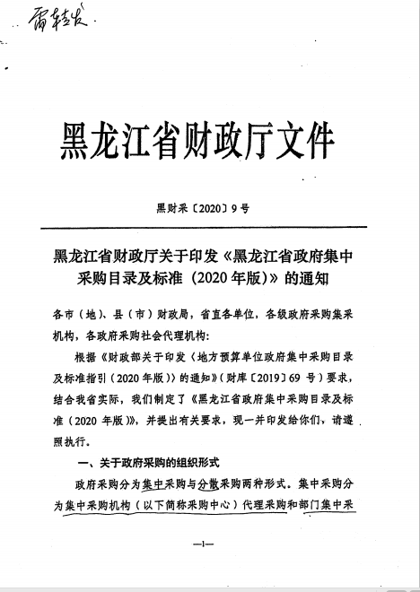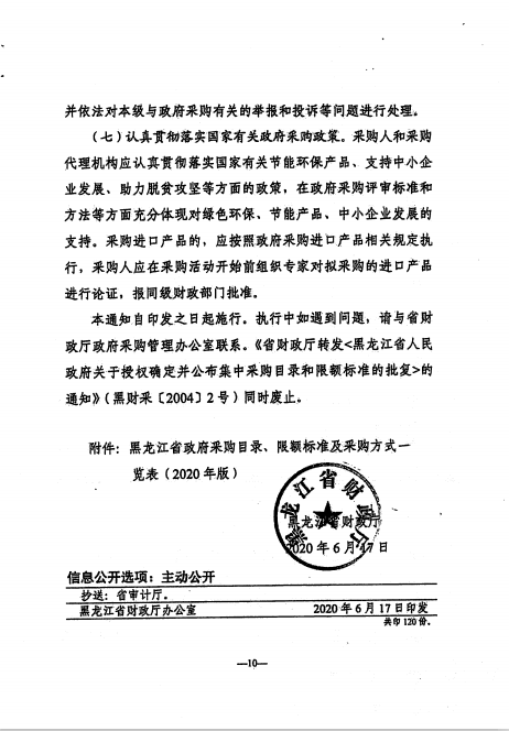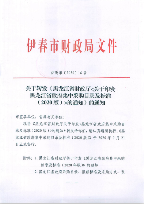 关于转发《黑龙江省财政厅<关于印发黑龙江省政府集中采购目录及标准(2020版)>的通知》的通知