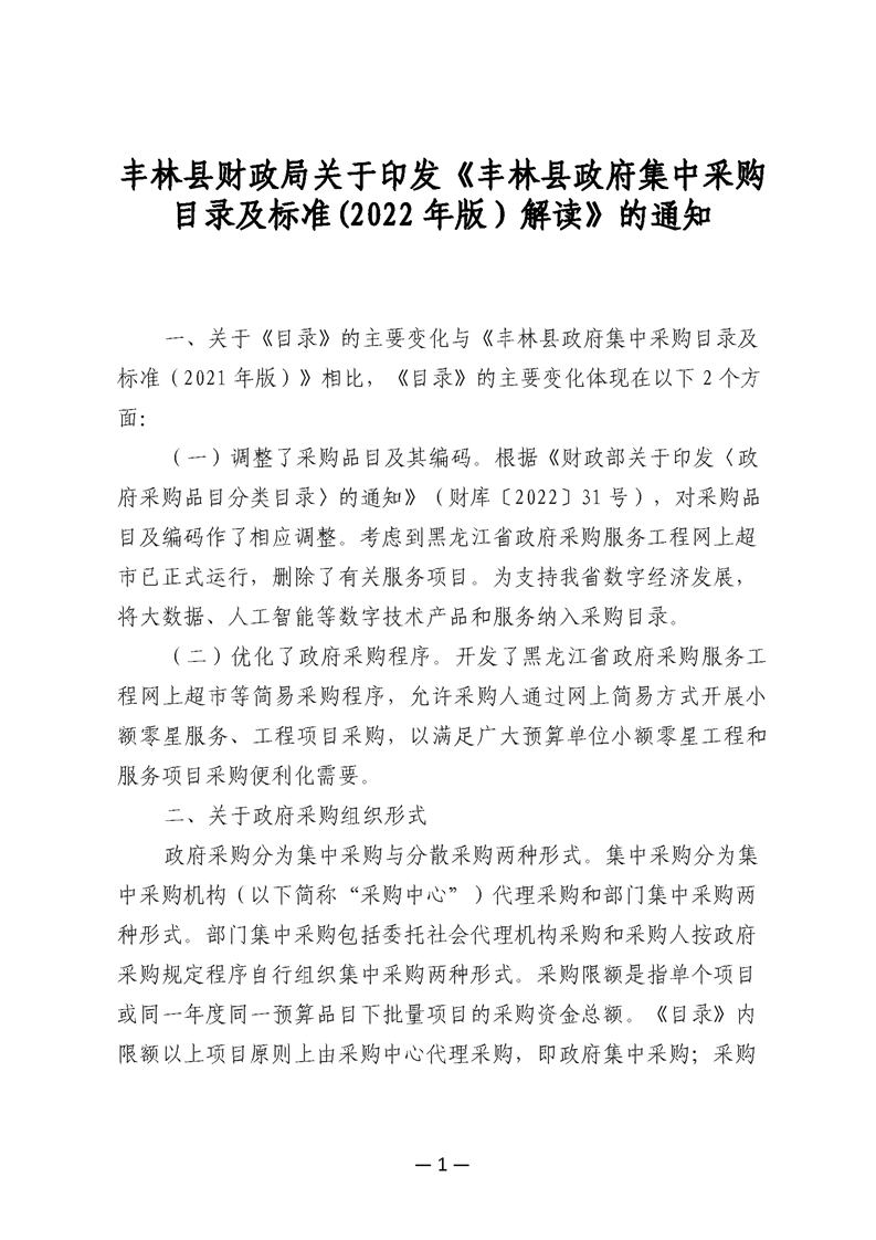 丰林县财政局关于印发《丰林县政府集中采购目录及标准(2022年版)解读》的通知
