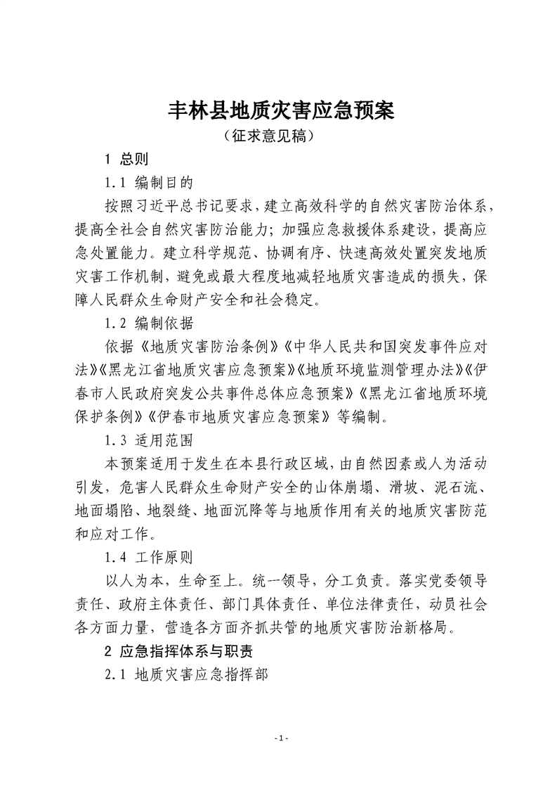 丰林县地质灾害应急预案(征求意见稿)