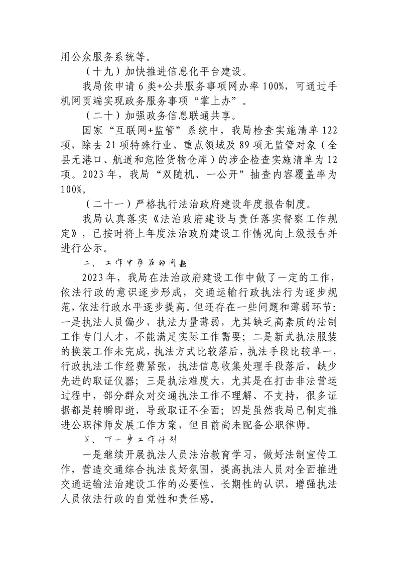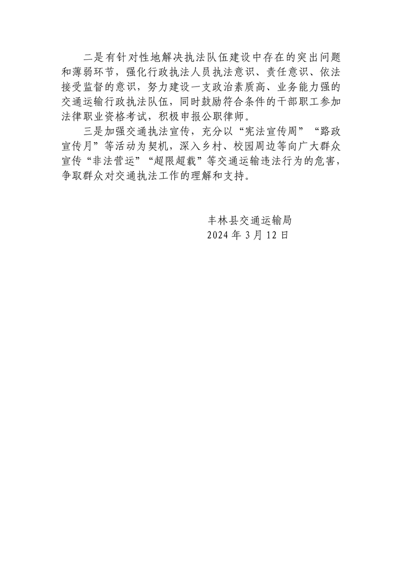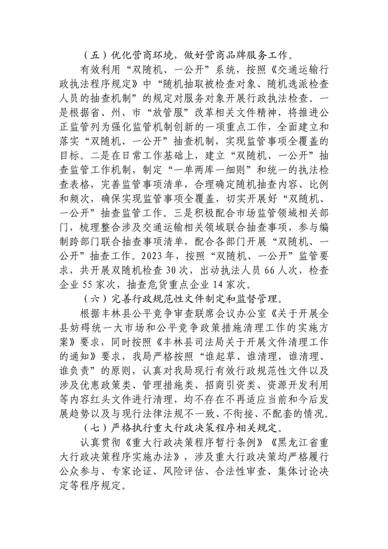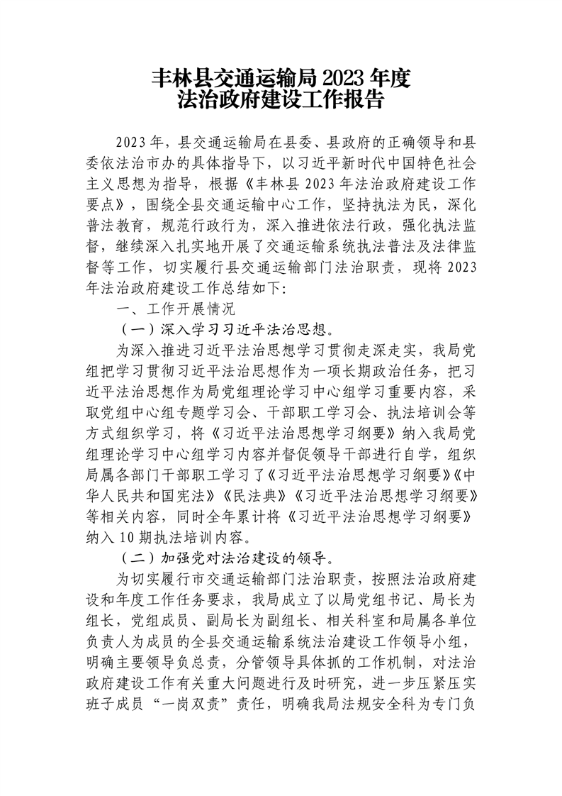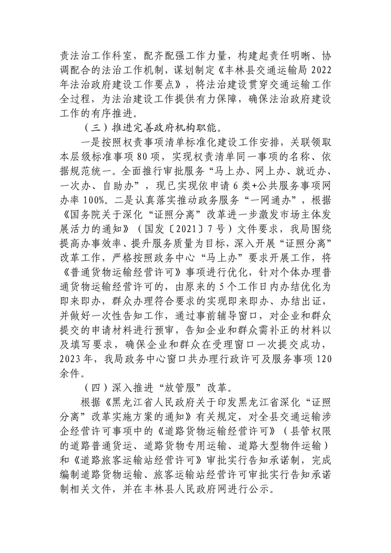 丰林县交通运输局2023年度法治政府建设工作报告