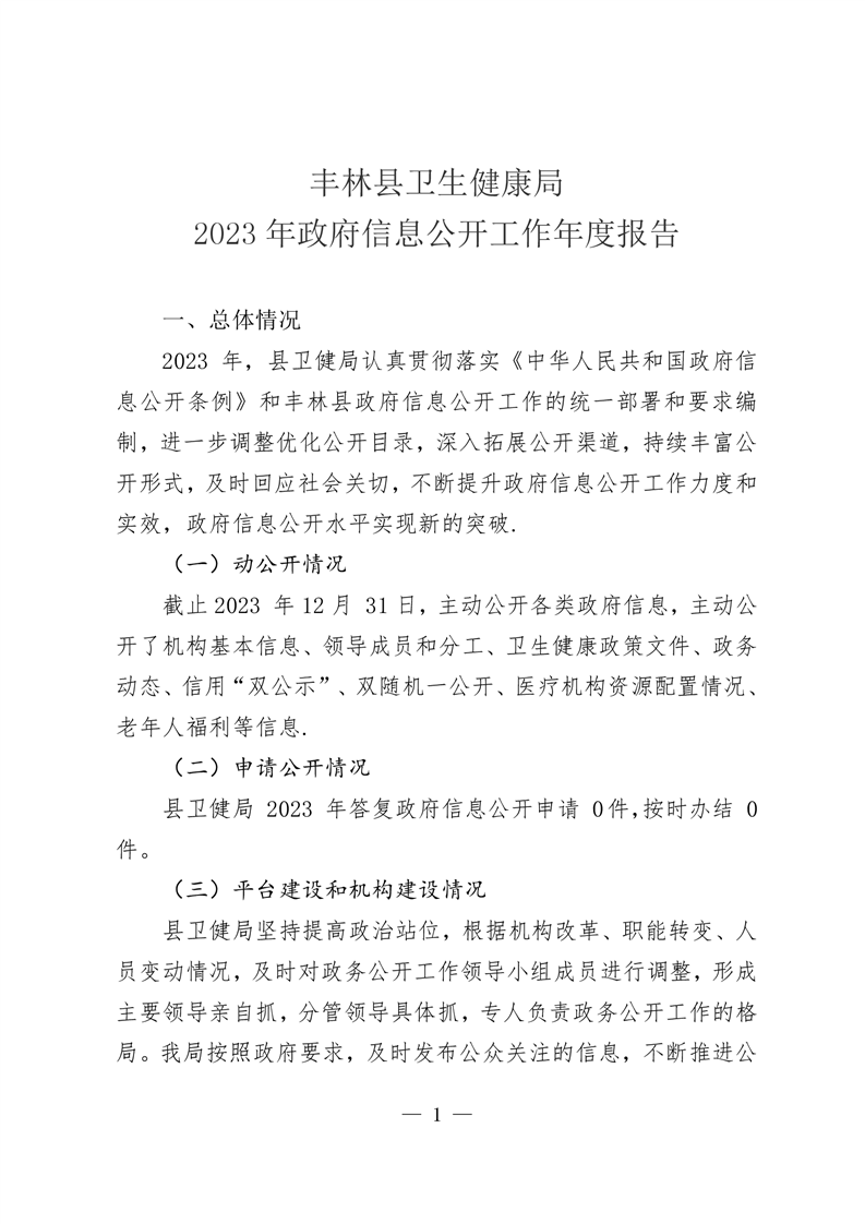 丰林县卫生健康局2023年政府信息公开工作年度报告