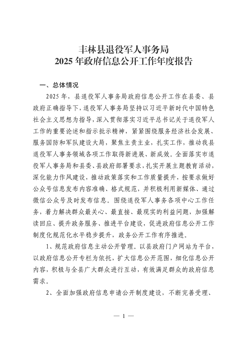 丰林县退役军人事务局2025年政府信息公开工作年度报告