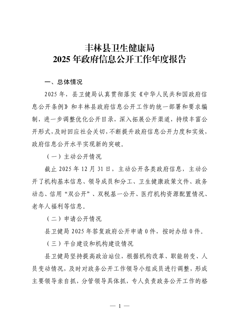 丰林县卫生健康局2025年政府信息公开工作年度报告