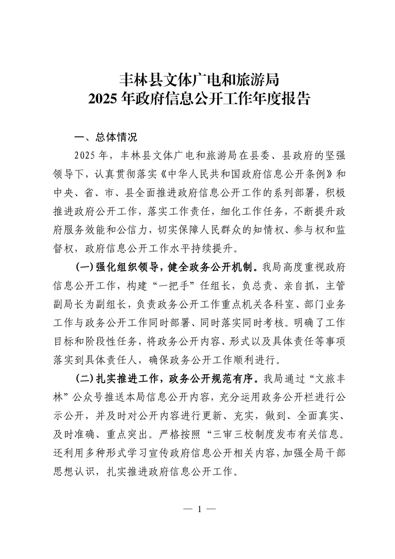 丰林县文体广电和旅游局2025年政府信息公开工作年度报告
