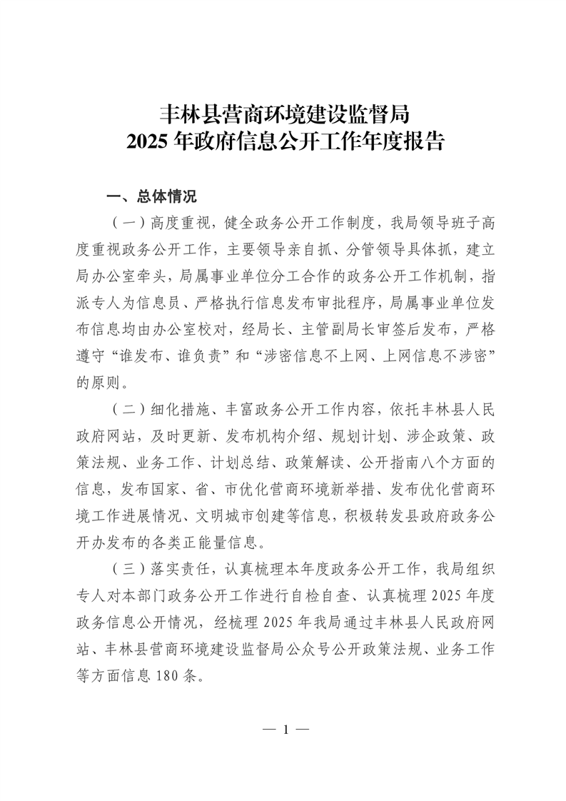 丰林县营商环境建设监督局2025年政府信息公开工作年度报告