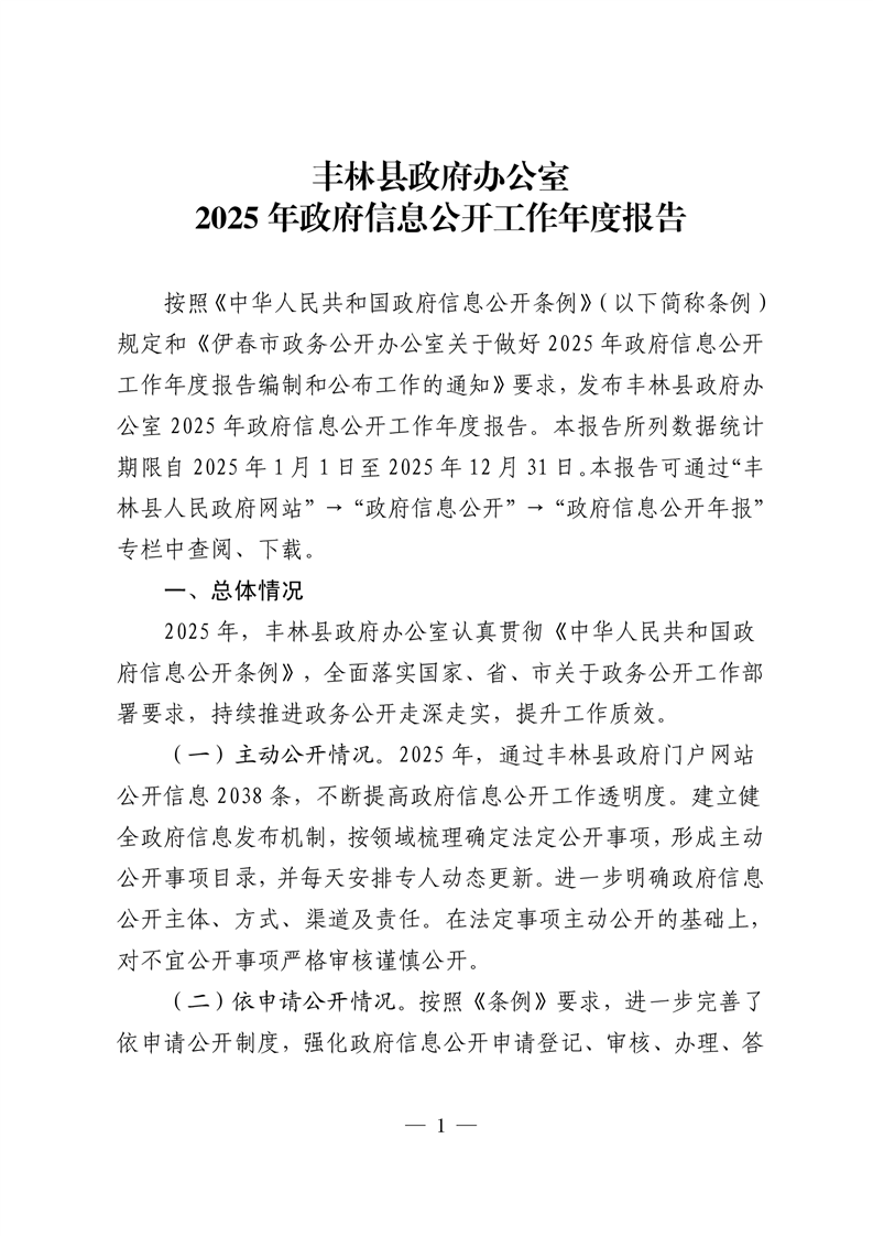丰林县政府办公室2025年政府信息公开工作年度报告
