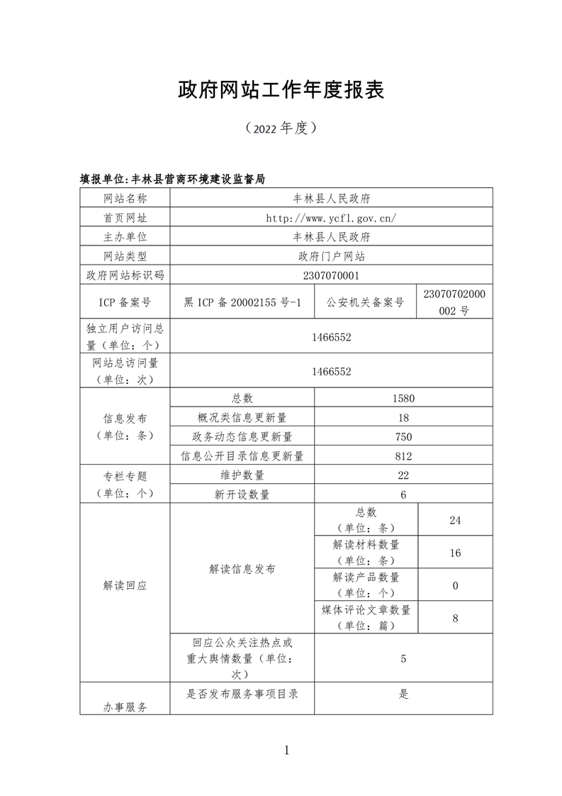 丰林县人民政府2022年网站工作年度报表