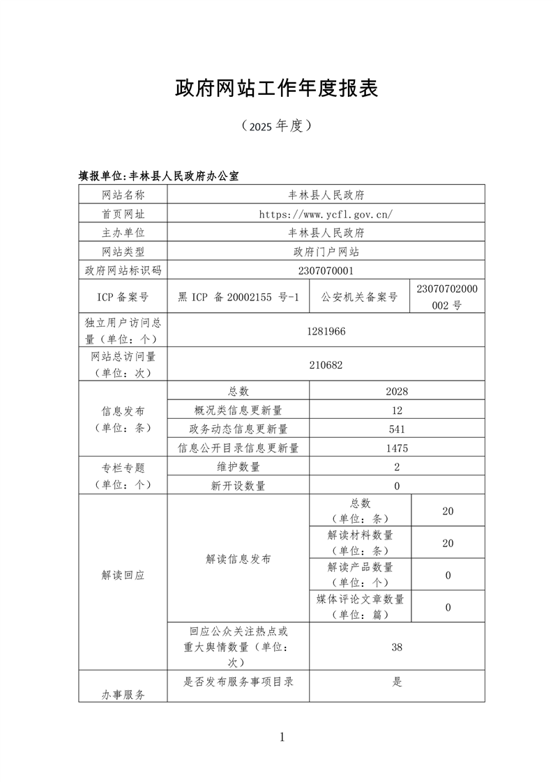 伊春市丰林县政府网站工作年度报表(2025年度)