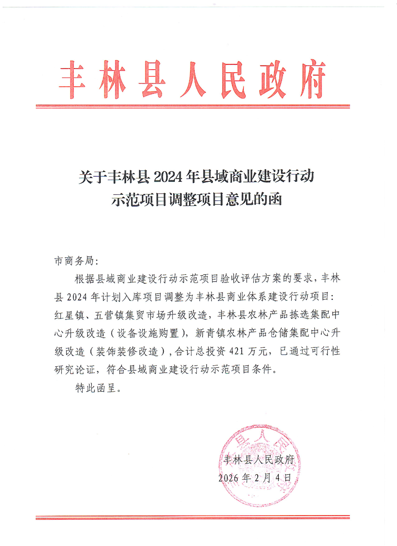 丰林县人民政府关于开展县域商业建设行动项目调整意见公示