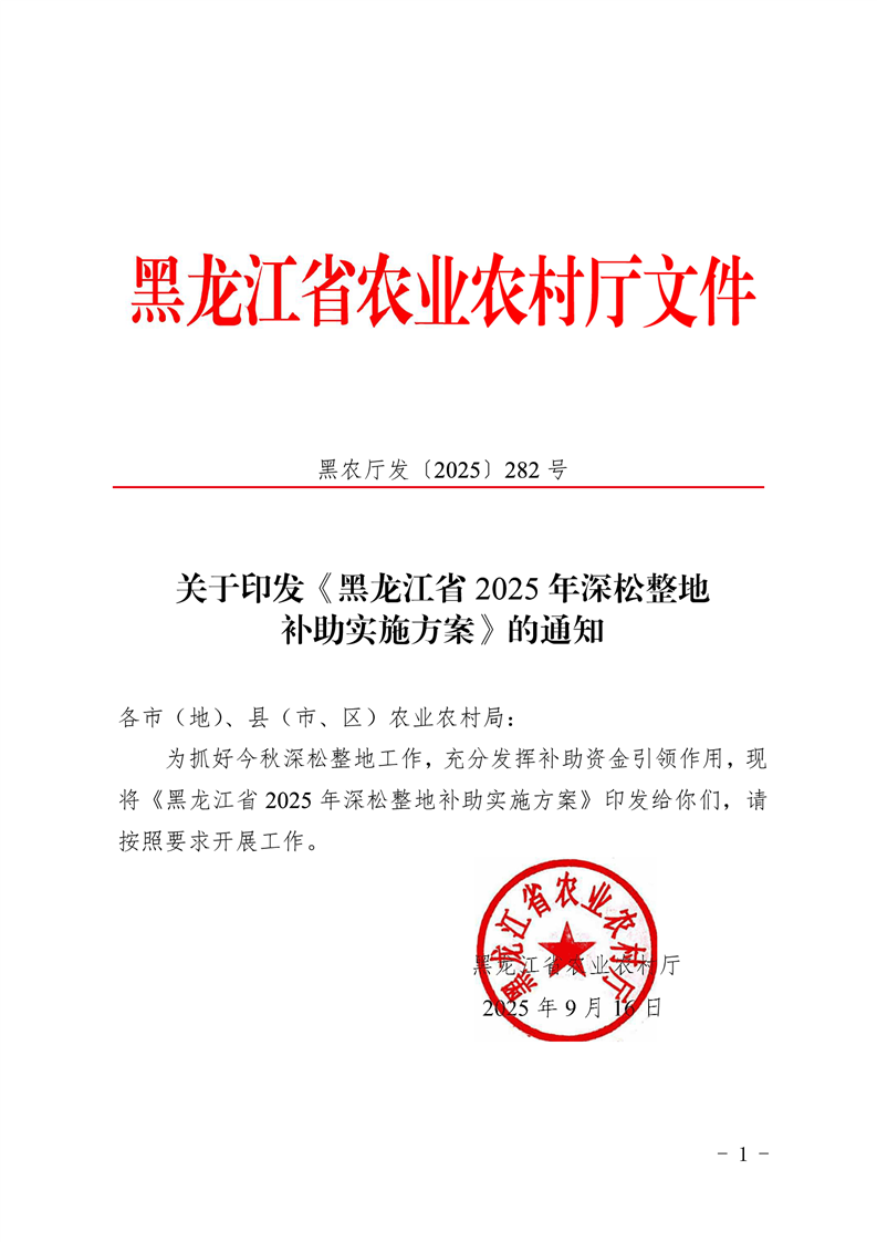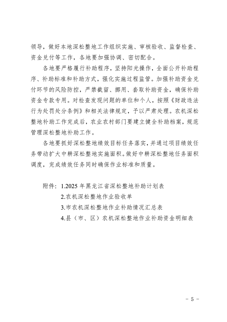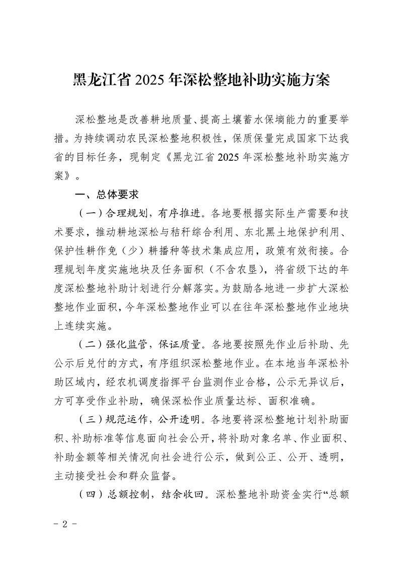 关于印发《黑龙江省2025年深松整地补助实施方案》的通知