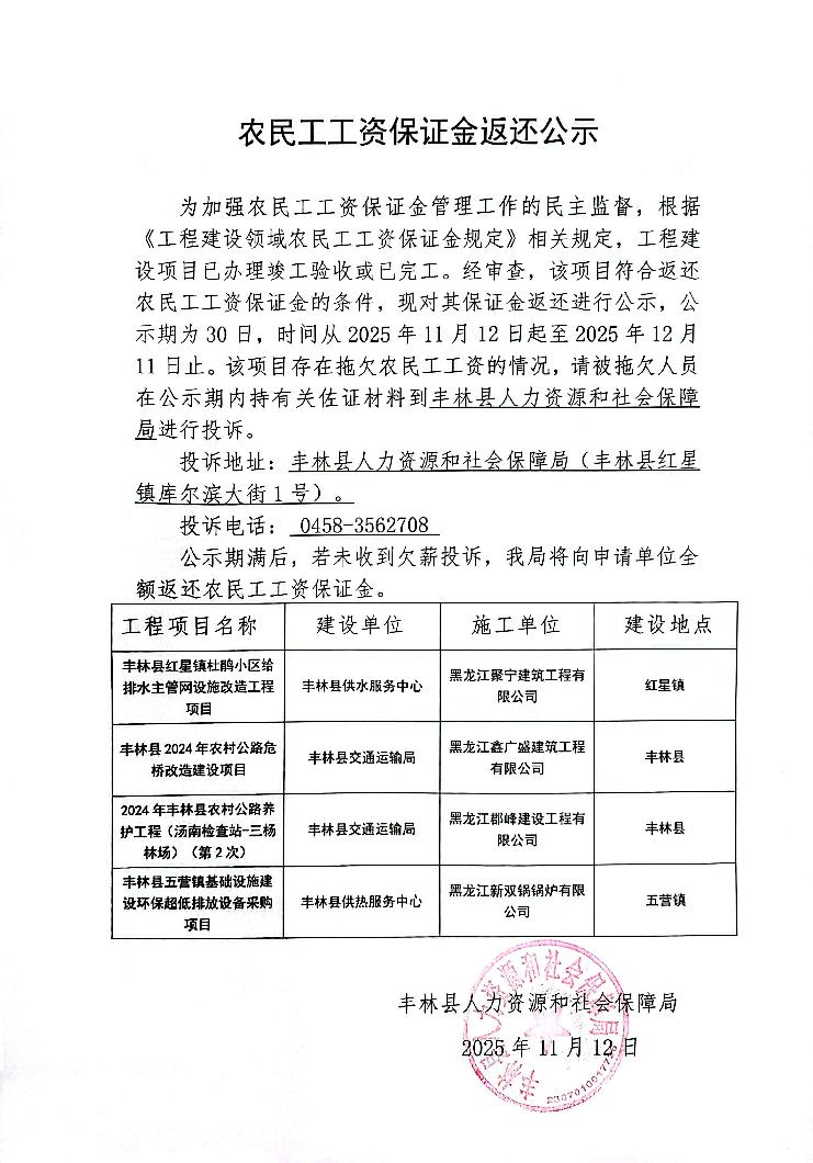 农民工工资保证金返还公示
