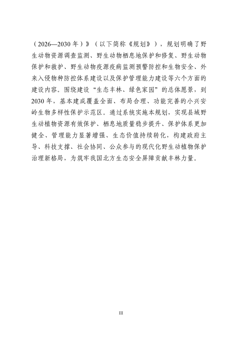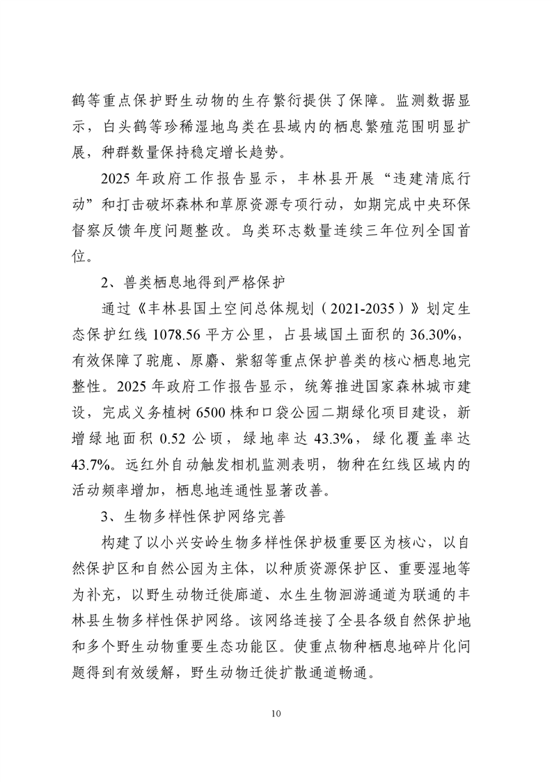 丰林县陆生野生动物及其栖息地保护规划(2026-2030年)(征求意见稿)