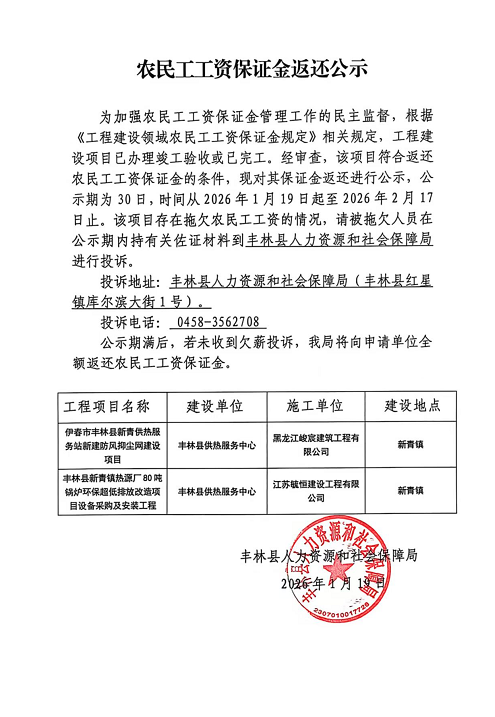 农民工工资保证金返还公示