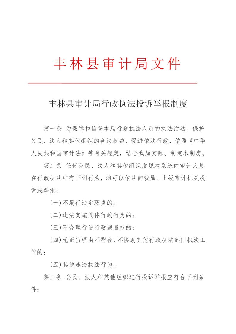 丰林县审计局行政执法投诉举报制度