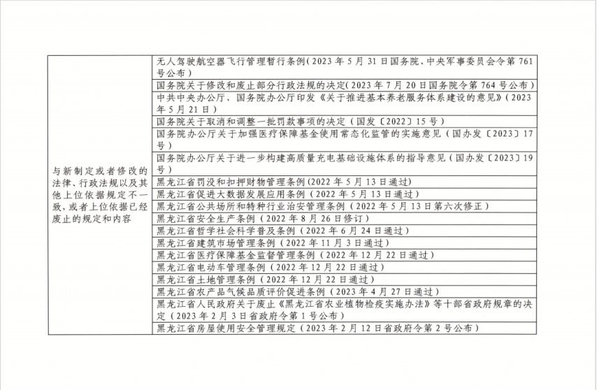 (一)与新制定或者修改的法律、行政法规以及其他上位依据规定不一致,或者上位依据已经废止;