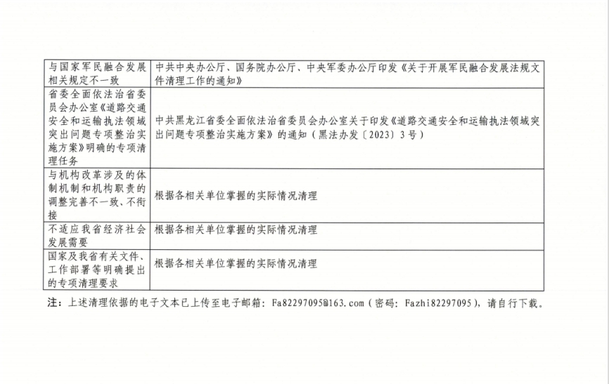 (九)县委全面依法治县委员会办公室《道路交通安全和运输执法领域突出问题专项整治工作方案》明确的专项清理任务;