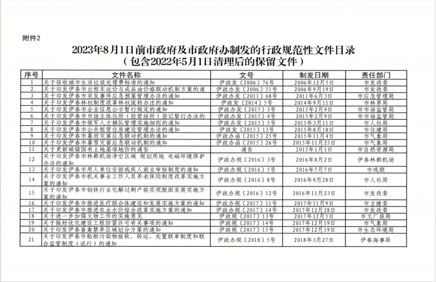 2、2023年8月1日前市政府及政府办制发的行政规范性文件目录(包含2022年5月1日清理后的保留文件)