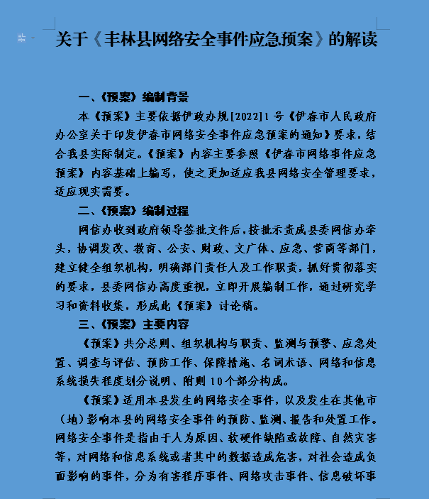关于《丰林县网络安全事件应急预案》的解读