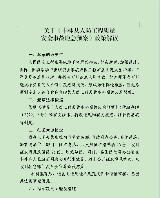 《丰林县人防工程质量安全事故应急预案》的政策解读