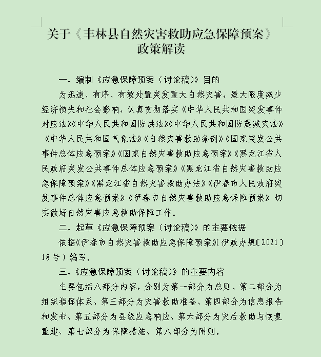 关于《丰林县自然灾害救助应急保障预案》政策解读