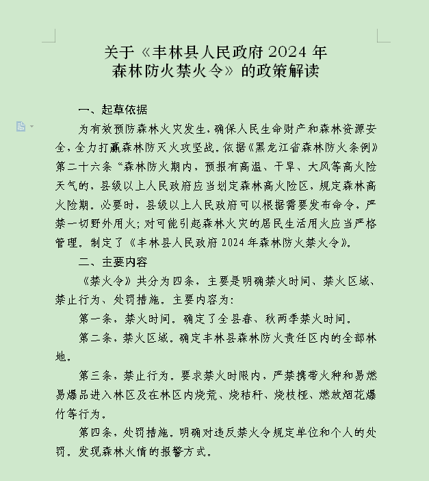 关于《丰林县人民政府2024年森林防火禁火令》的政策解读