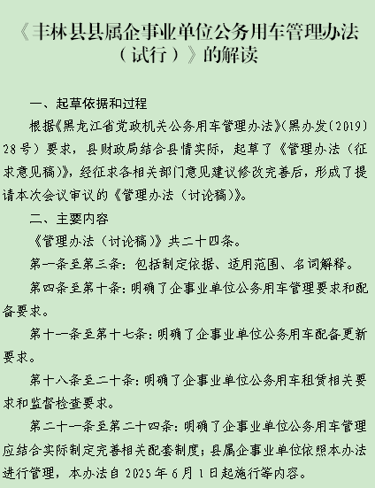 《丰林县县属企事业单位公务用车管理办法(试行)》的解读