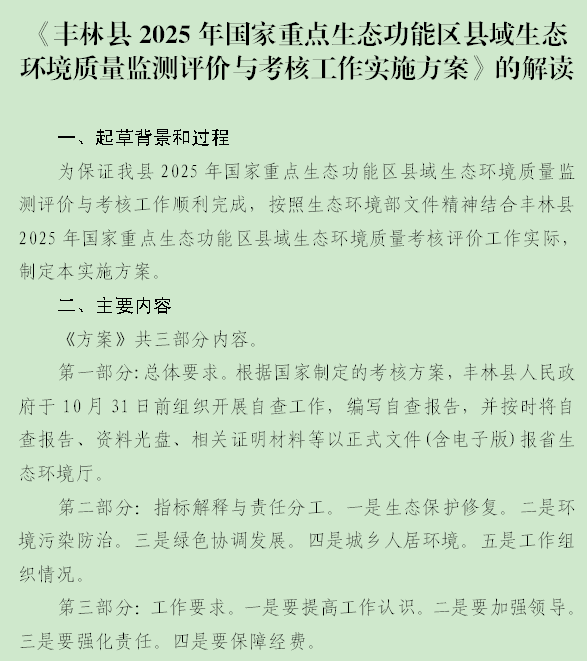 《丰林县2025年国家重点生态功能区县域生态环境质量监测评价与考核工作实施方案》的解读