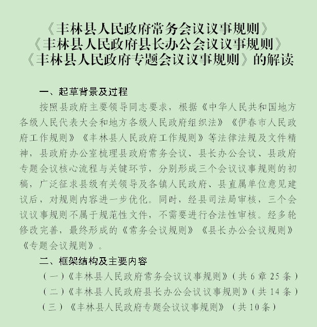 《丰林县人民政府常务会议议事规则》《丰林县人民政府县长办公会议议事规则》《丰林县人民政府专题会议议事规则》的解读