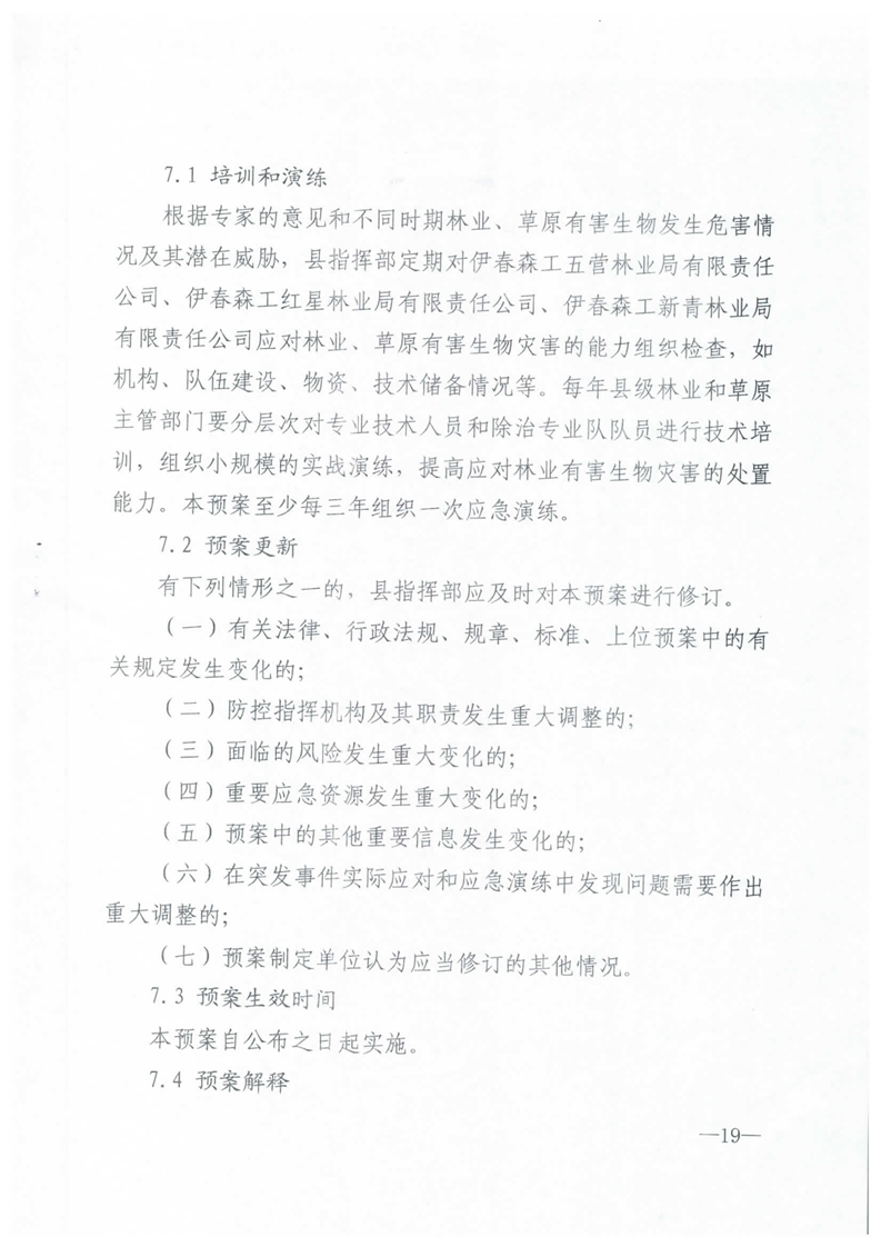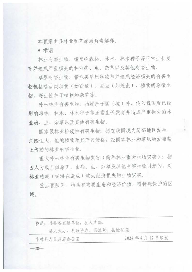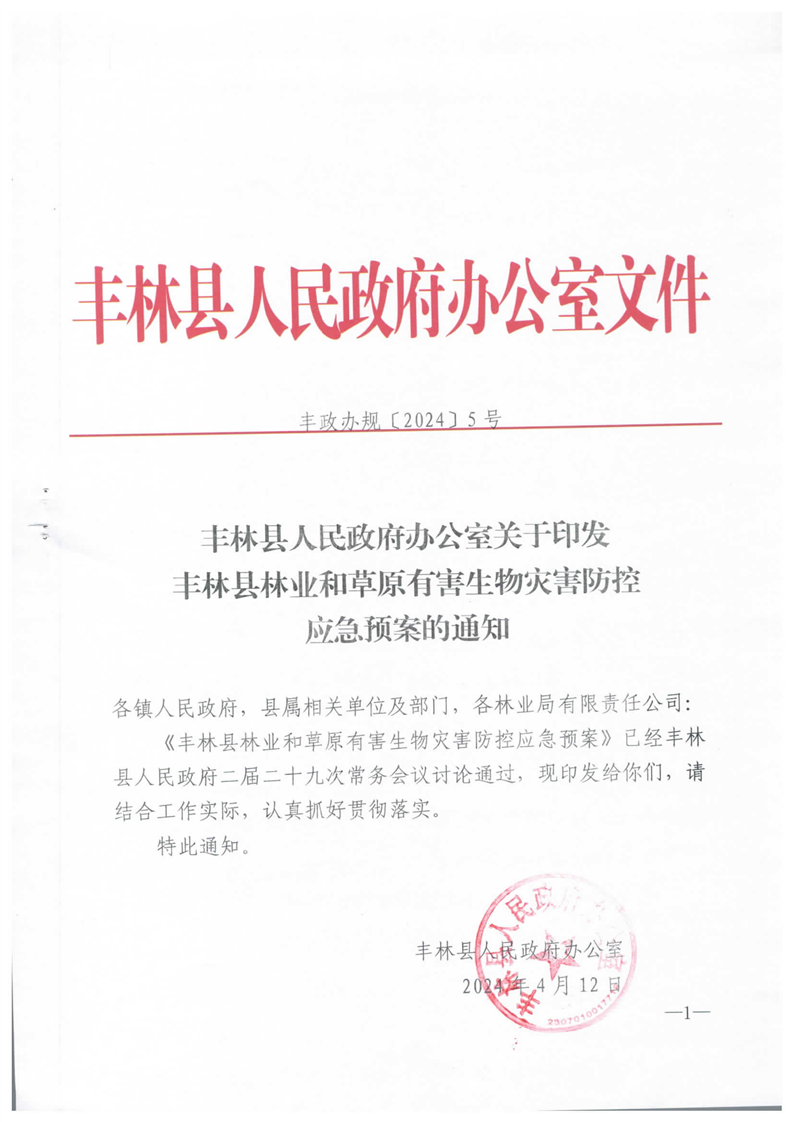 丰林县人民政府办公室关于印发丰林县林业和草原有害生物灾害防控应急预案的通知