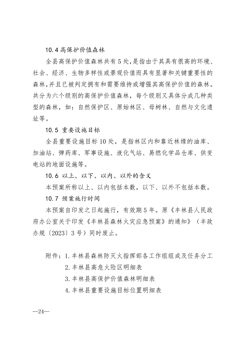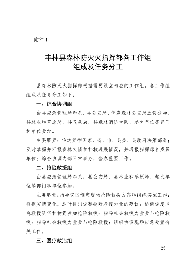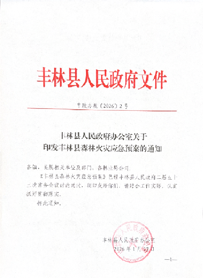 丰林县人民政府办公室关于印发丰林县森林火灾应急预案的通知
