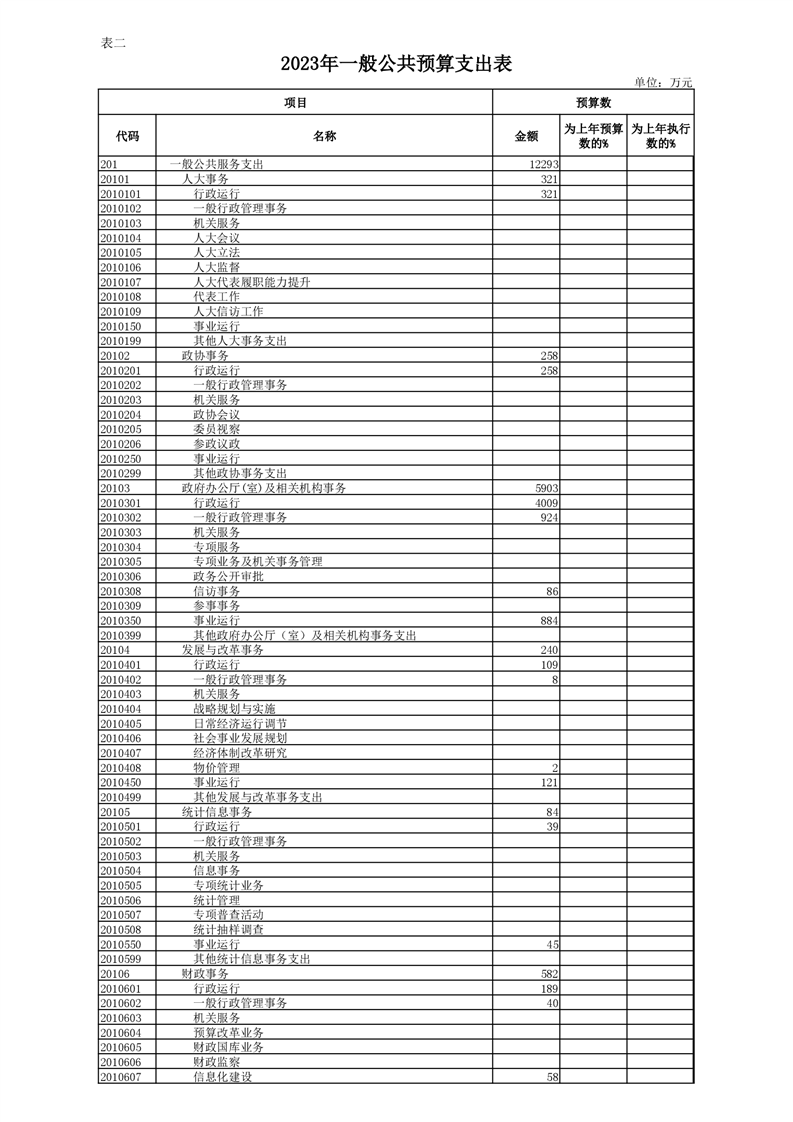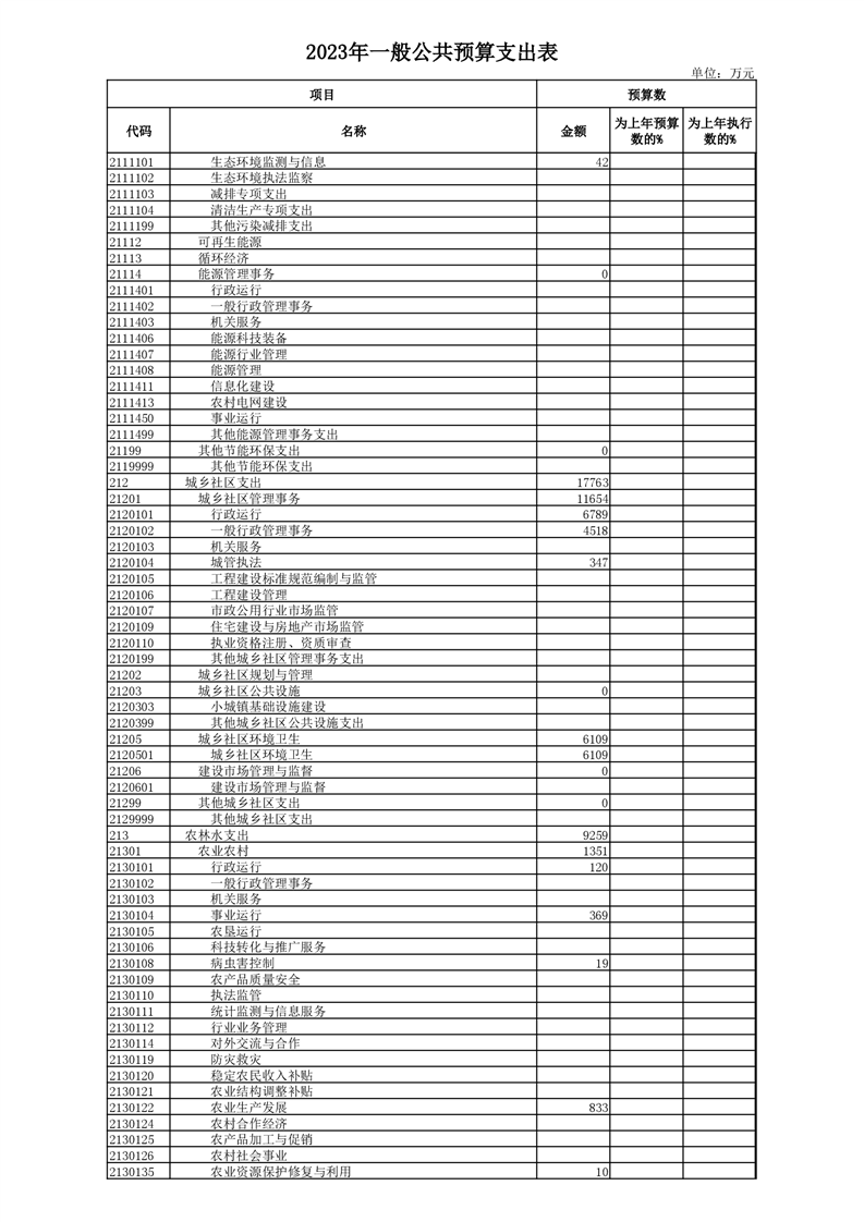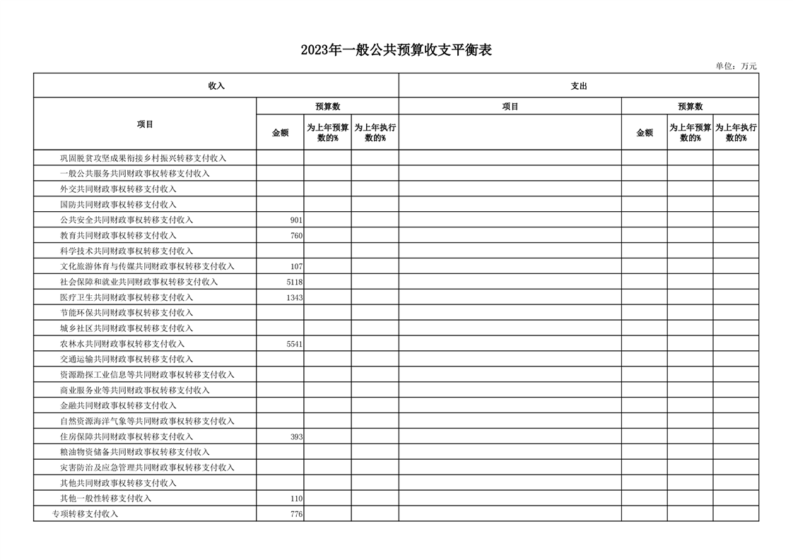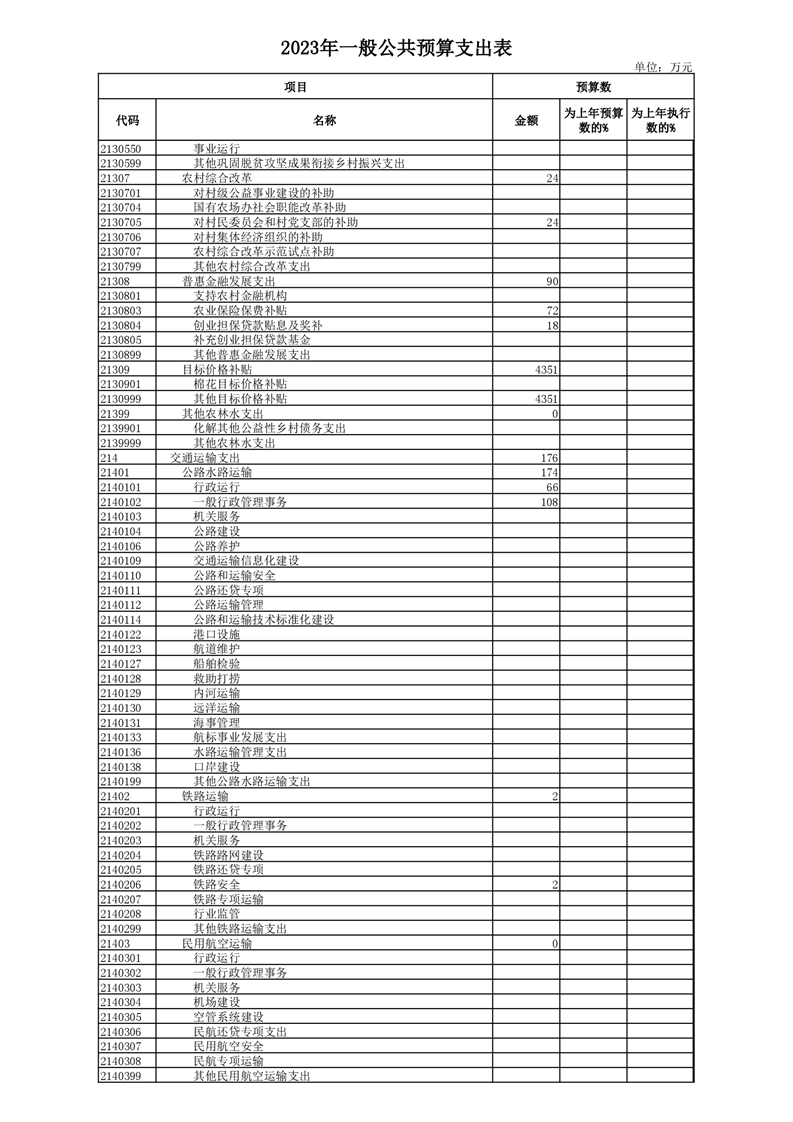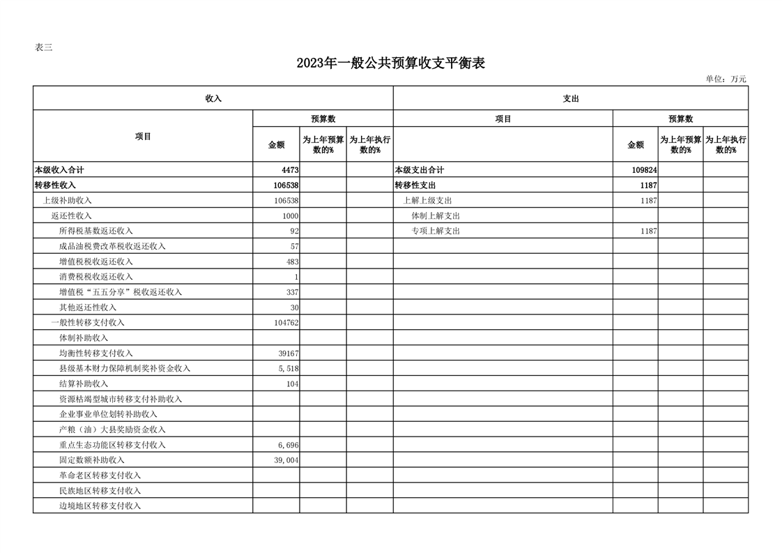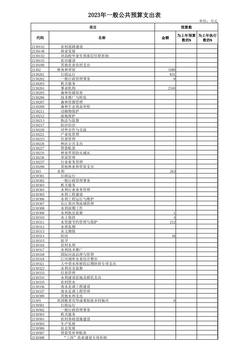 丰林县2023年地方财政预算表