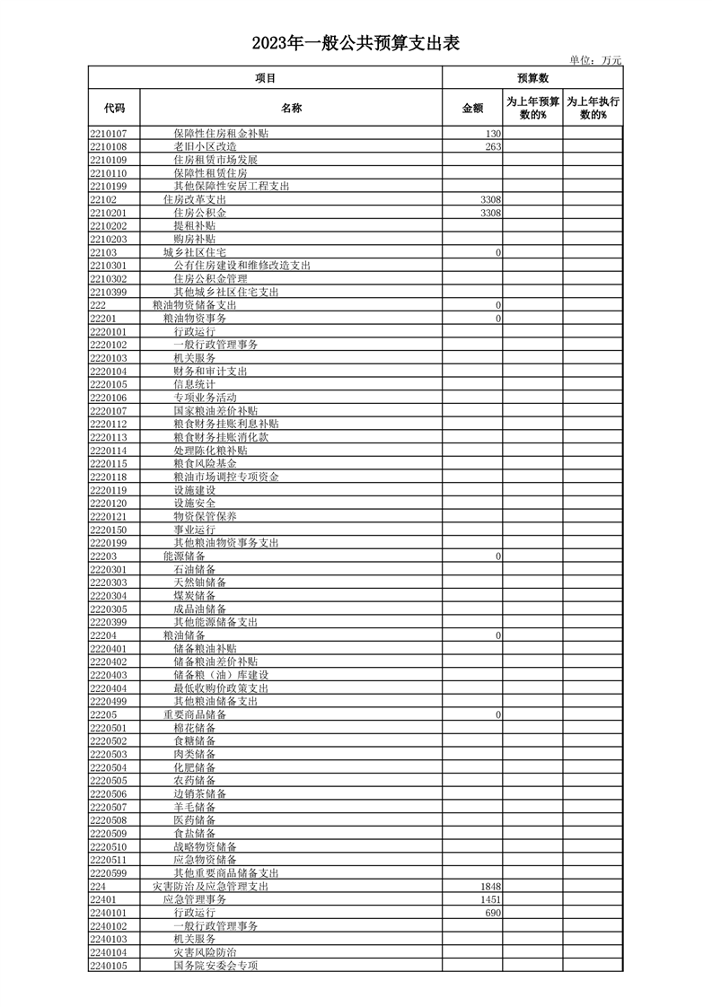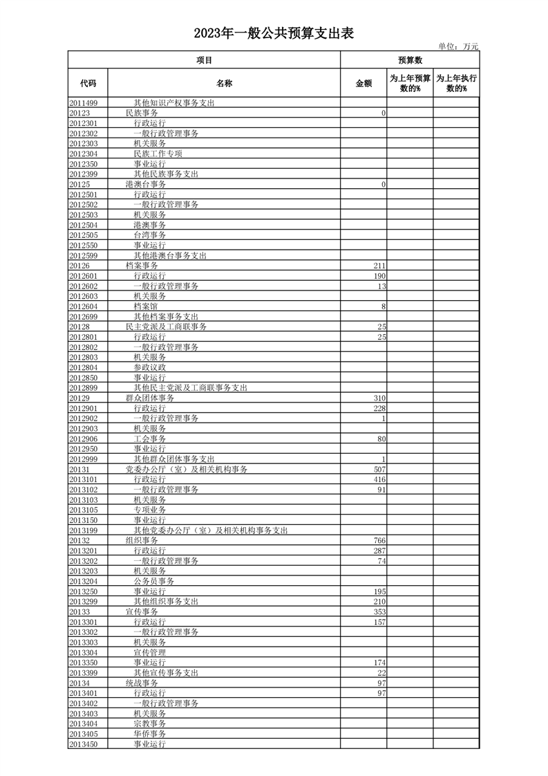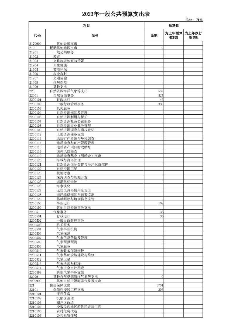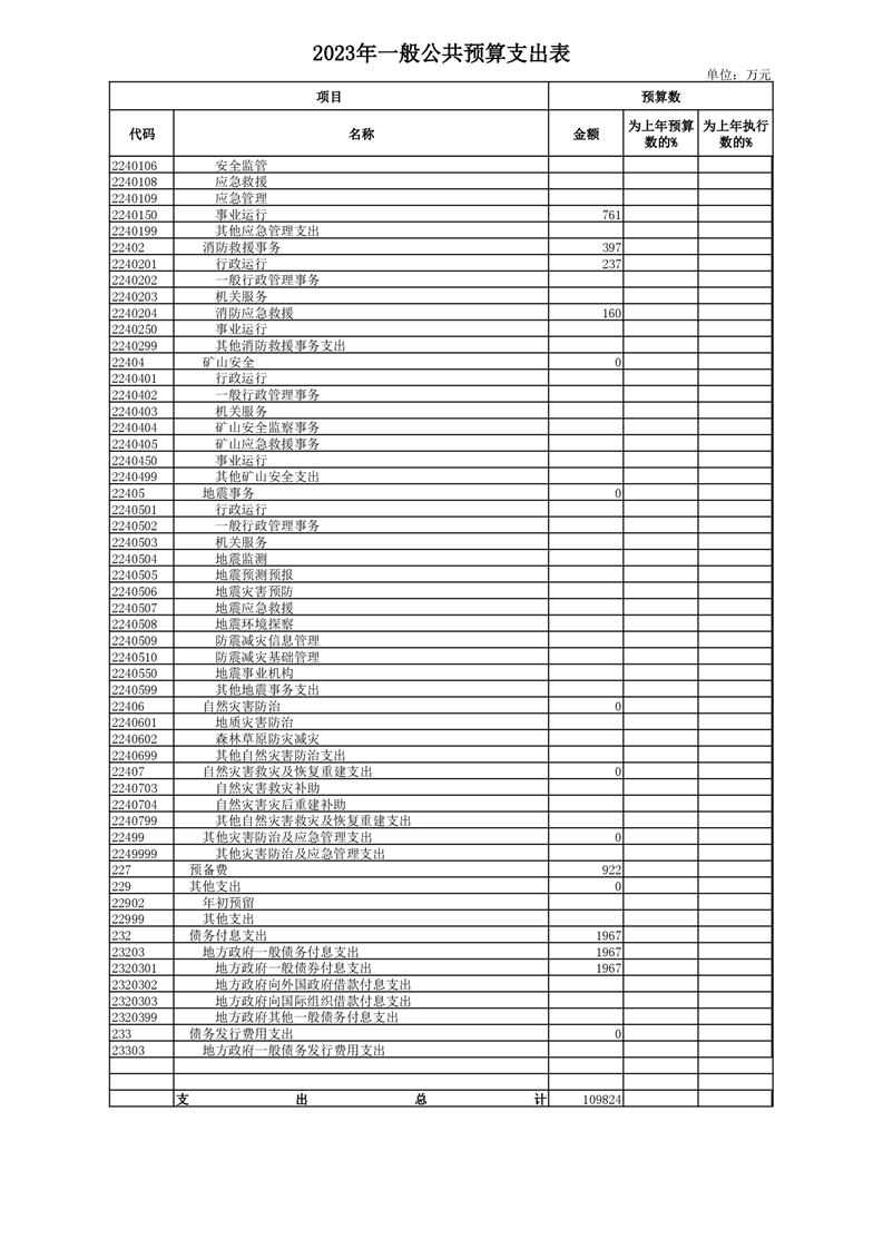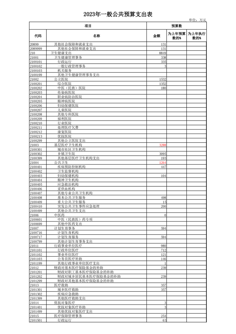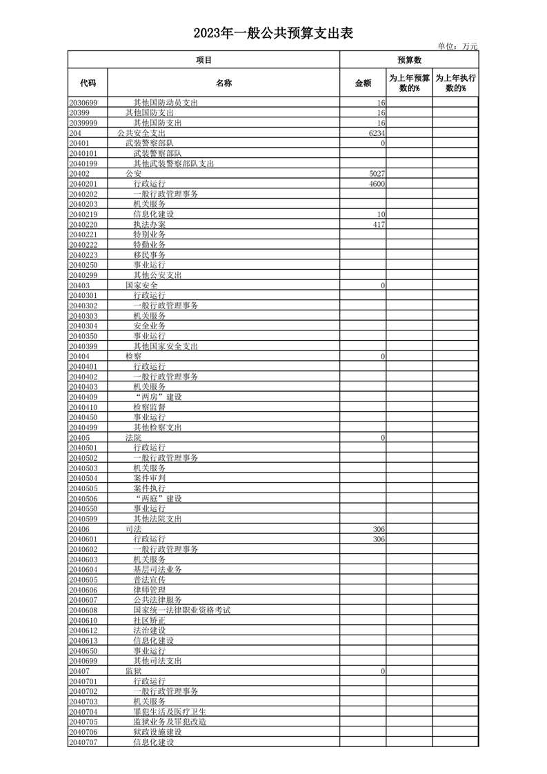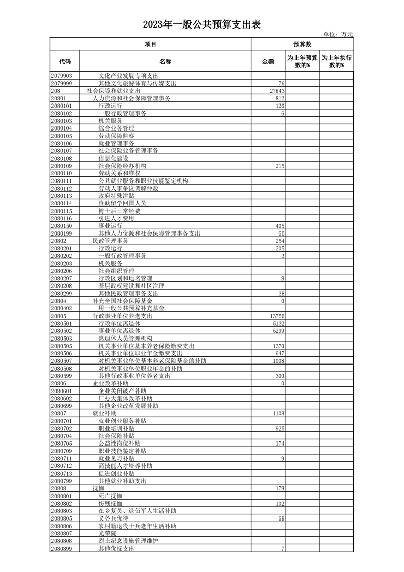 丰林县2023年地方财政预算表