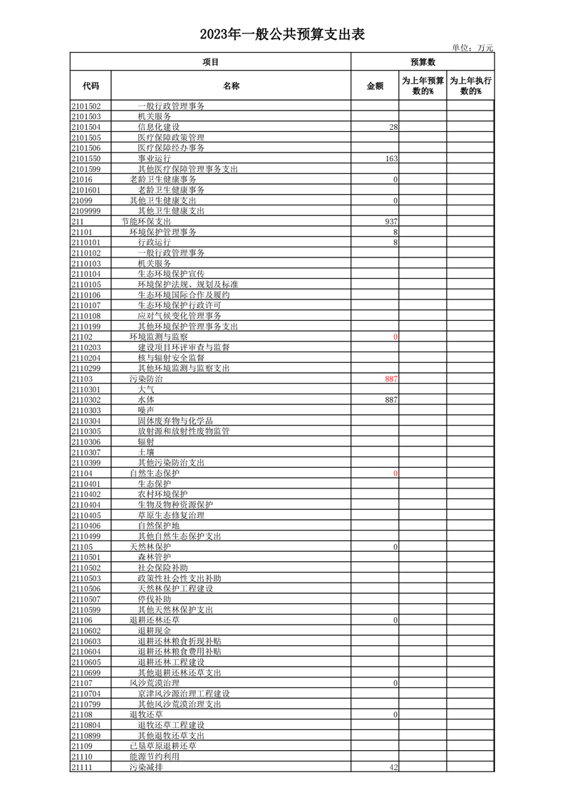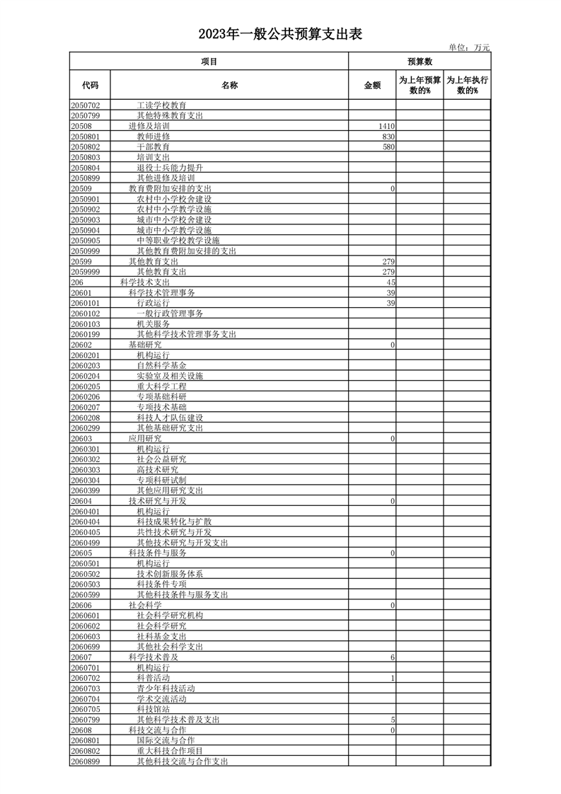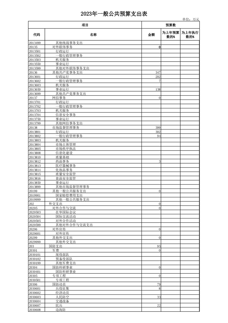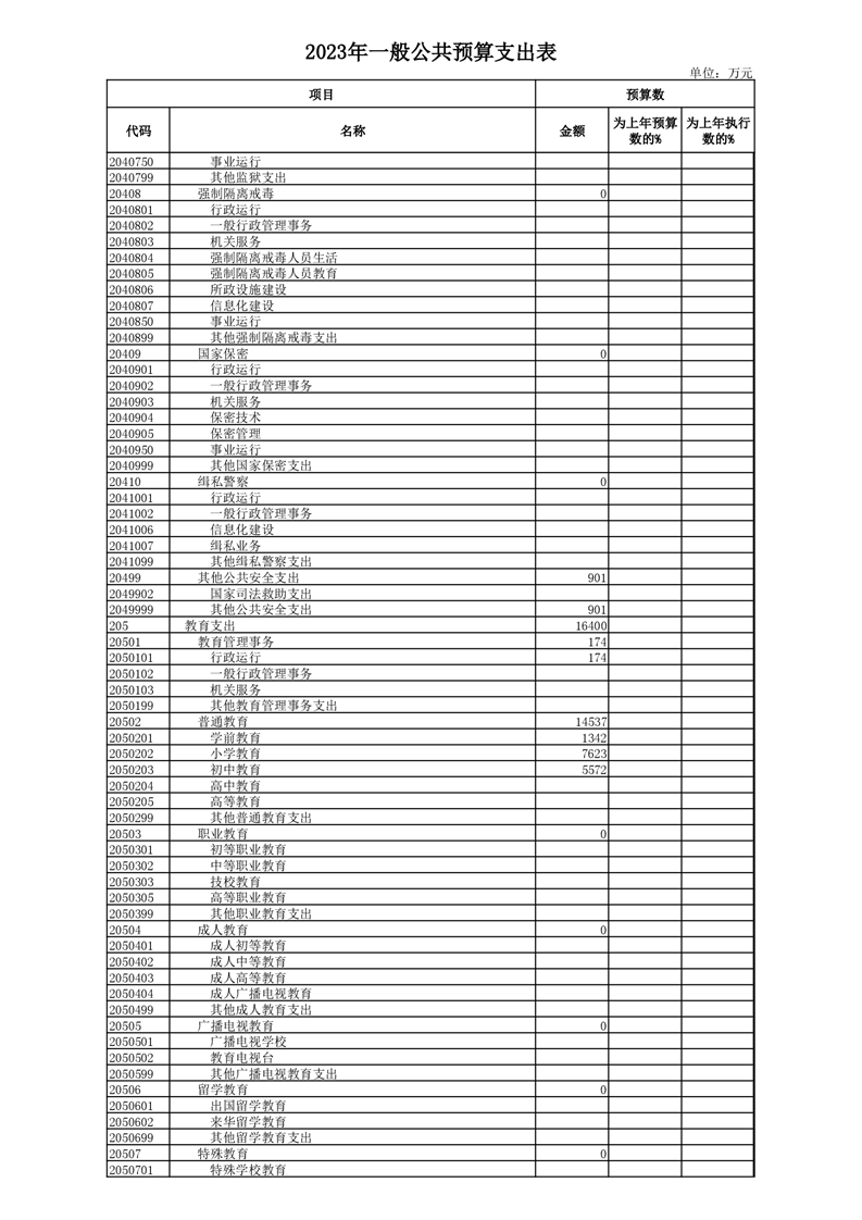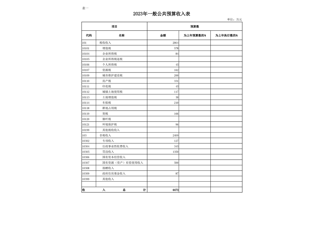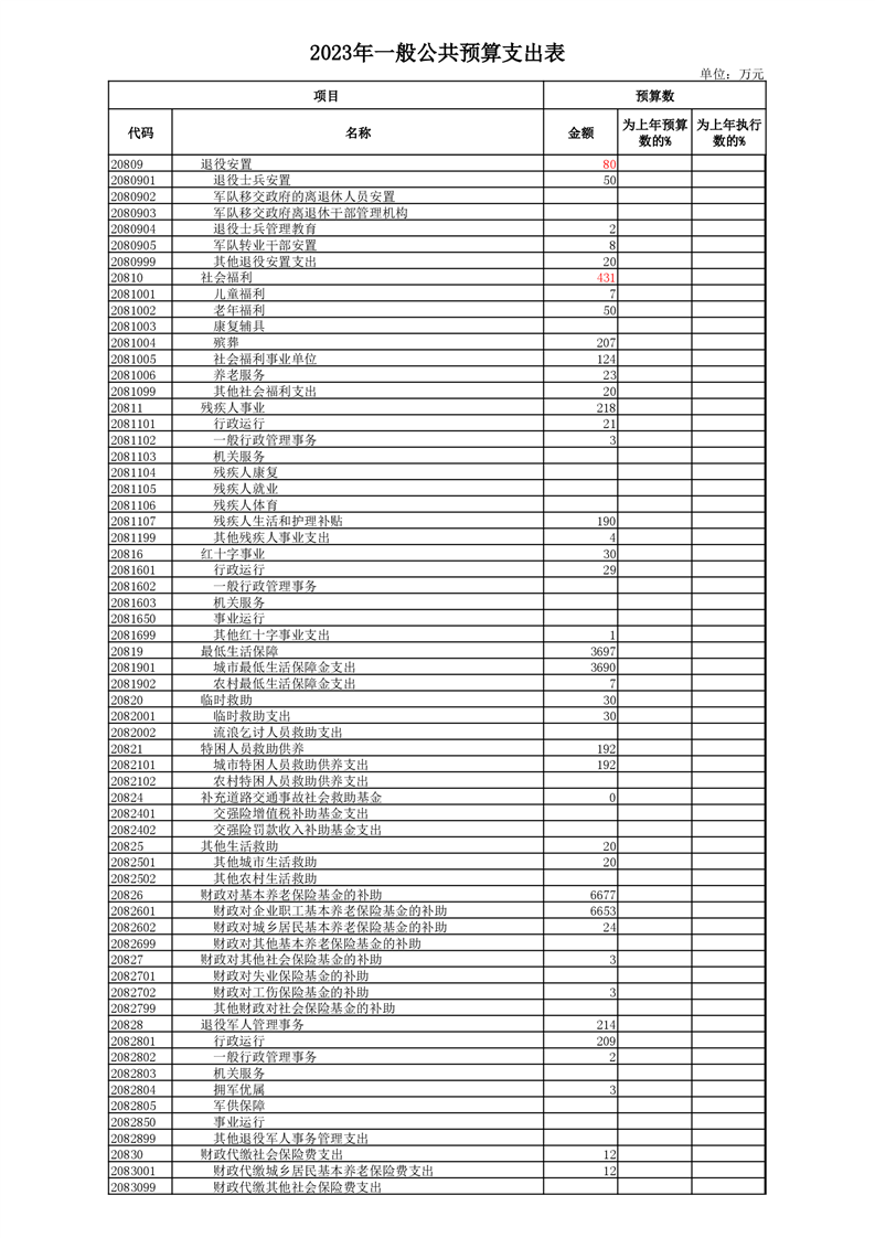 丰林县2023年地方财政预算表