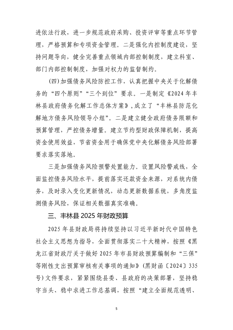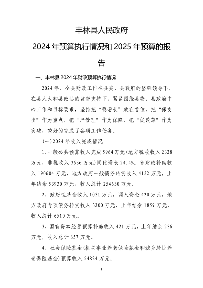 丰林县人民政府2024年预算执行情况和2025年预算的报告
