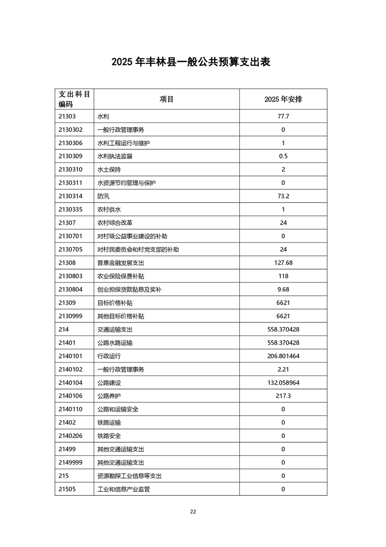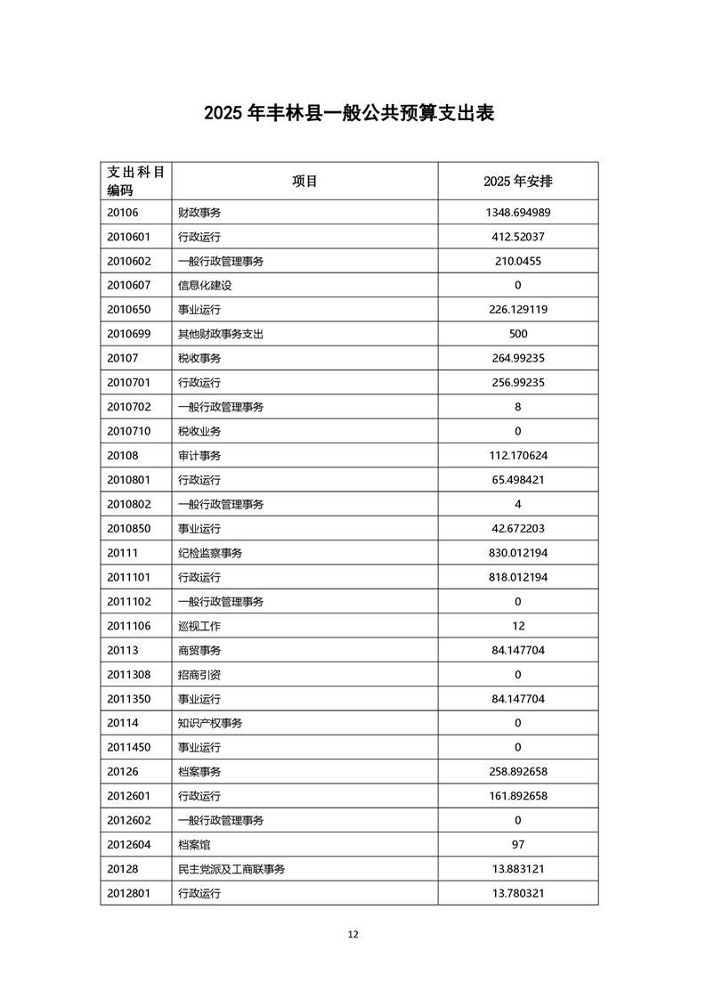 丰林县预决算