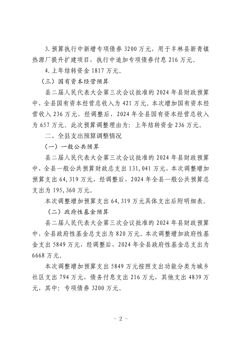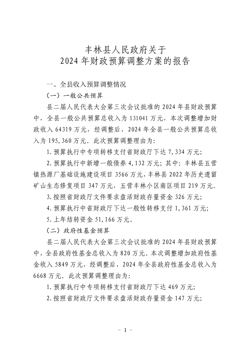 丰林县人民政府关于2024年财政预算调整方案的报告